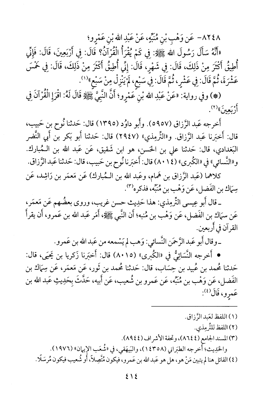 (¬٤) القائل هنا لم يتبين من هو، هل هو عبد الله بن عَمرو، فيكون متصلا، أو شعيب فيكون مُرسلًا.