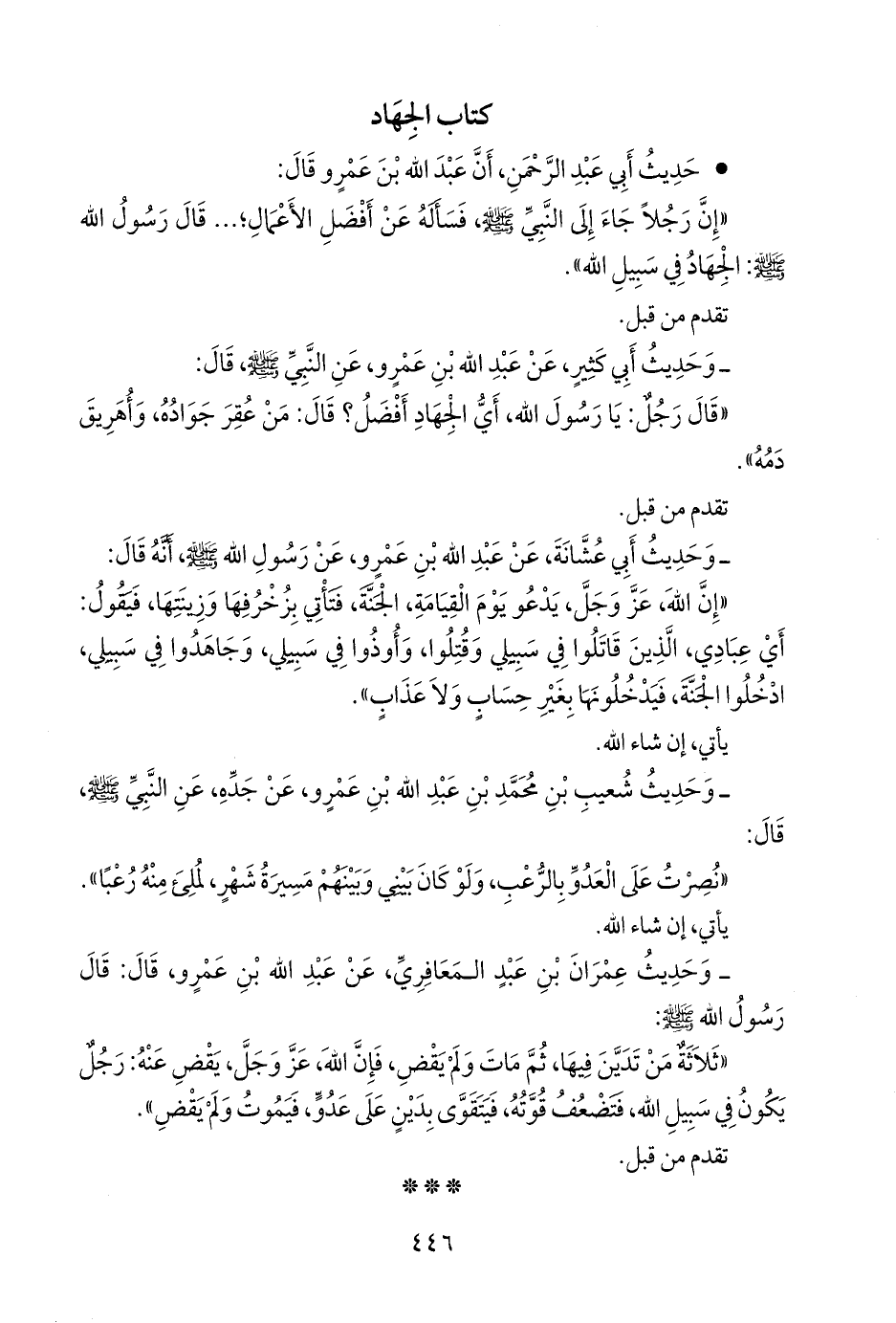 - حديث أبي عبد الرَّحمَن، أن عبد الله بن عَمرو قال:
