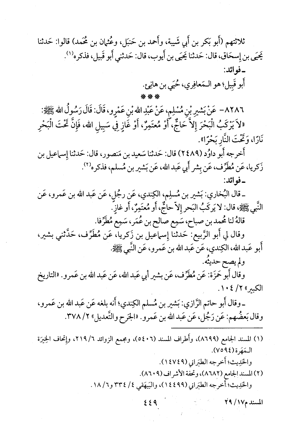 - وقال المِزِّي: رواه، يعني أبا داود، عن سعيد بن منصور، إلا أنه زاد في إسناده: «عن بشر أبي عبد الله»، بين مطرف، وبشير. «تهذيب الكمال» ٤/ ١٧٥.