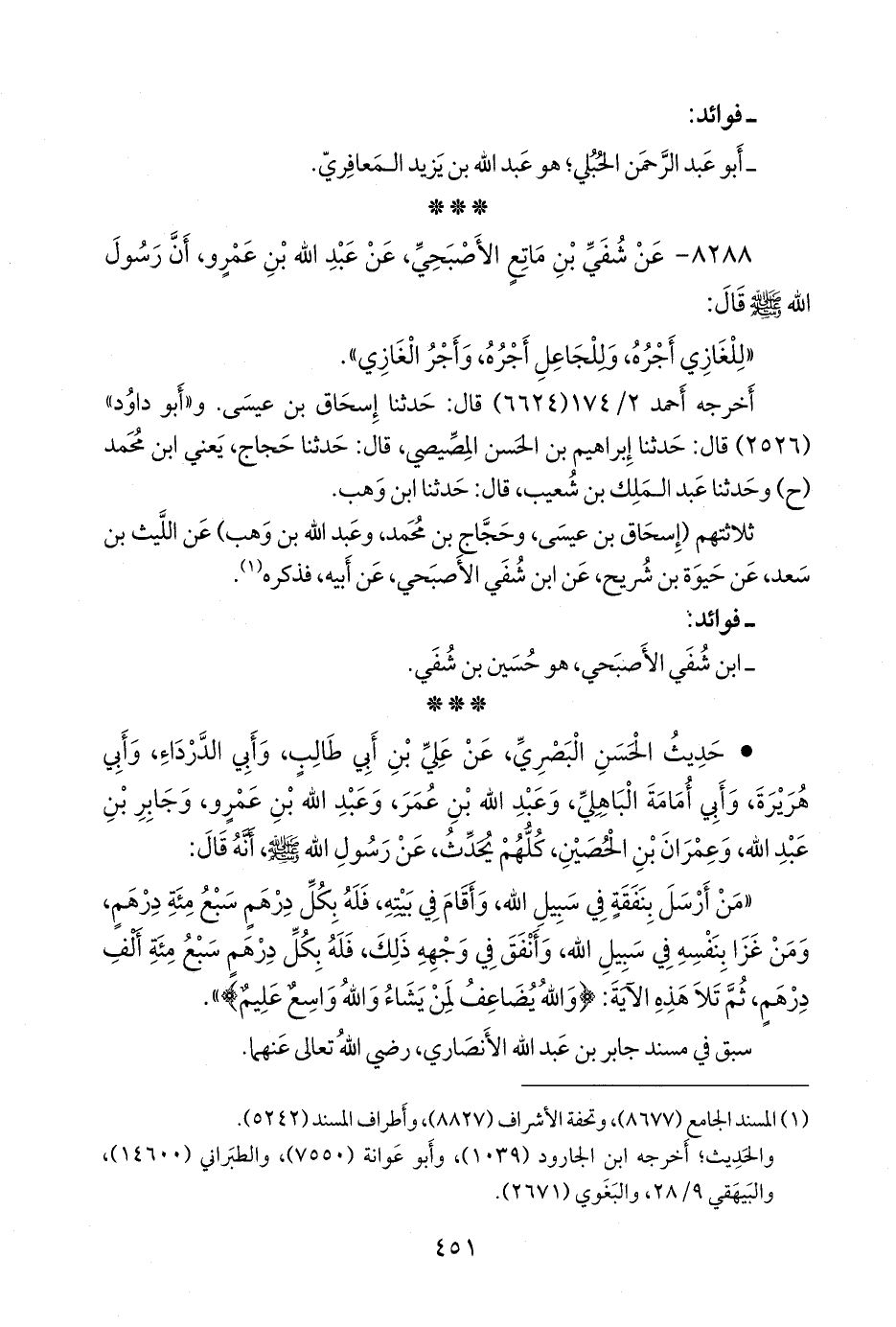 ثلاثتهم (إسحاق بن عيسى، وحجاج بن محمد، وعبد الله بن وهب) عن الليث بن سعد، عن حَيْوَة بن شُرَيح، عن ابن شفي الأصبَحي، عن أبيه، فذكره (¬١).