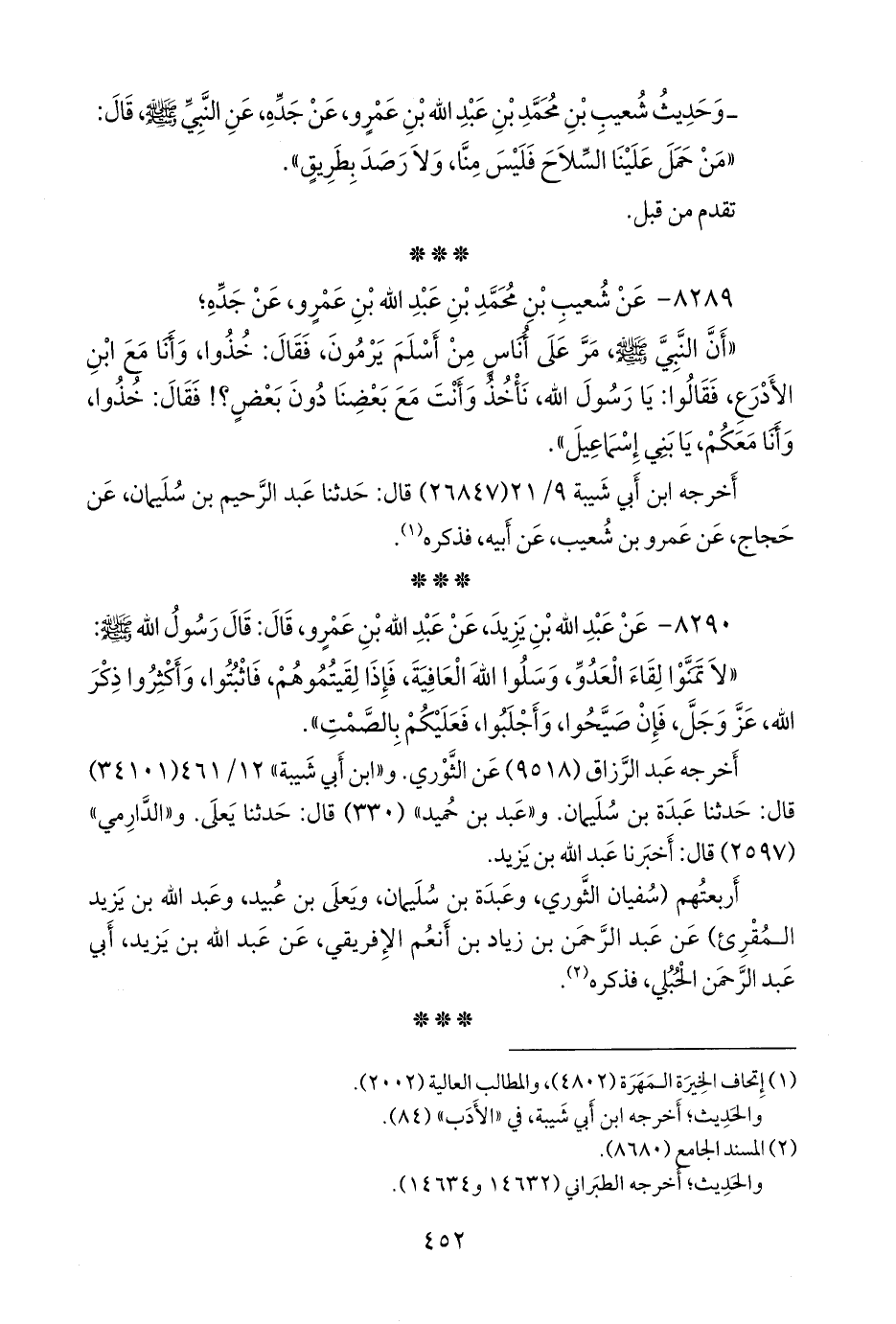 ٨٢٩٠ - عن عبد الله بن يزيد، عن عبد الله بن عَمرو، قال: قال رسول الله صَلى الله عَليه وسَلم: