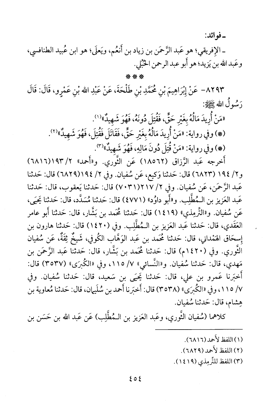 (¬٤) المسند الجامع (٨٦٨٤)، وتحفة الأشراف (٨٦٠٣)، وأطراف المسند (٥١٠٤ و ٥١٨٦).