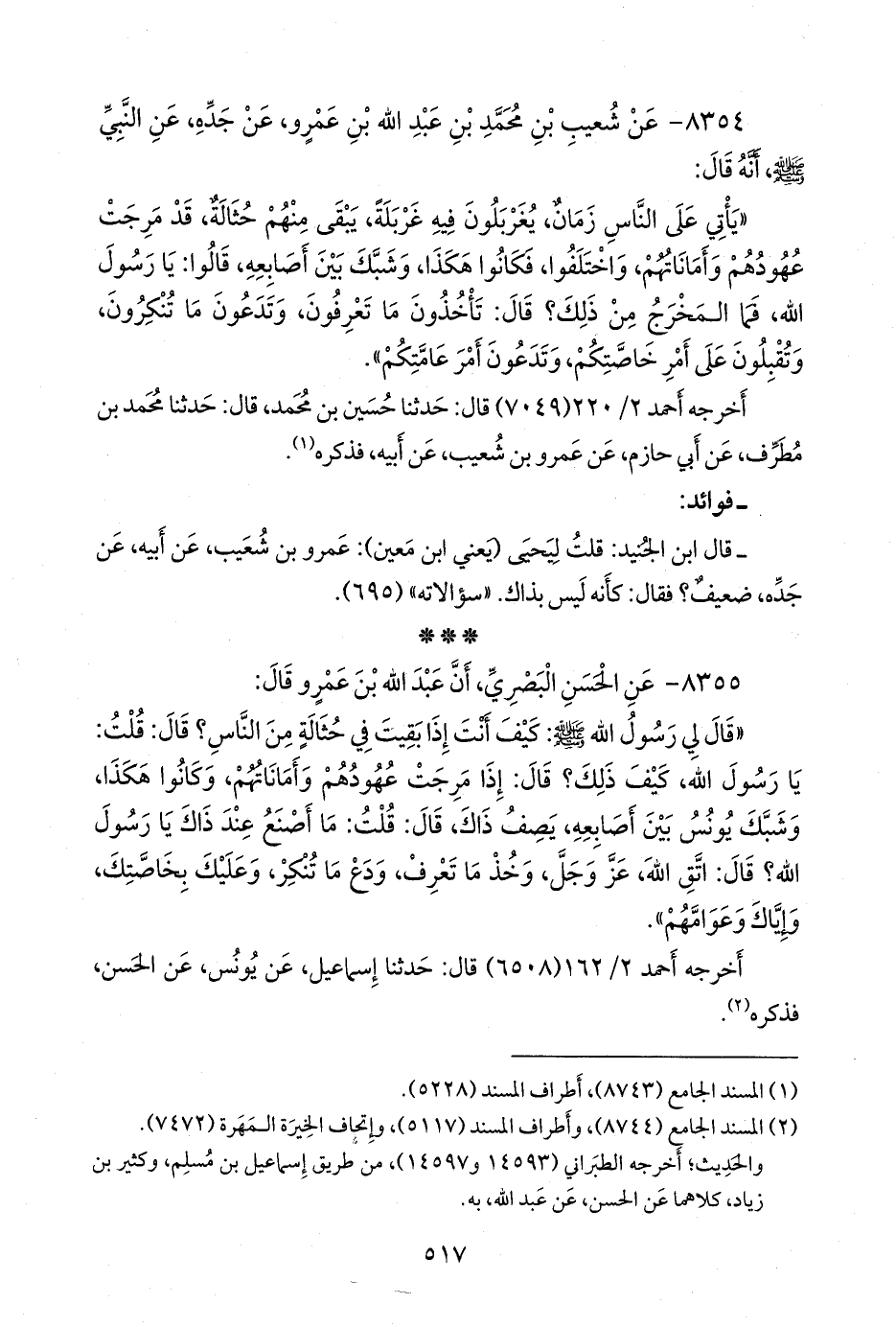 (¬١) المسند الجامع (٨٧٤٤)، وأطراف المسند (٥١١٧)، وإتحاف الخِيرَة المَهَرة (٧٤٧٢).