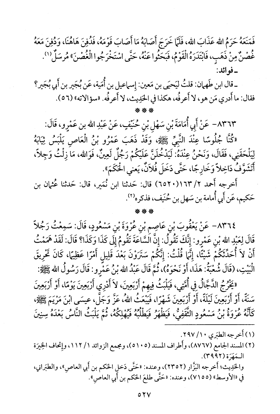٨٣٦٣ - عن أَبي أُمامة بن سهل بن حنيف، عن عبد الله بن عَمرو، قال: