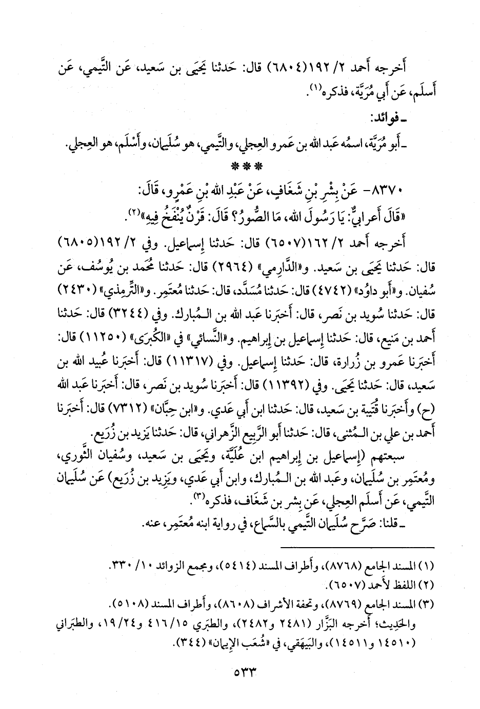 (¬٢) المسند الجامع (٨٧٦٩)، وتحفة الأشراف (٨٦٠٨)، وأطراف المسند (٥١٠٨).
