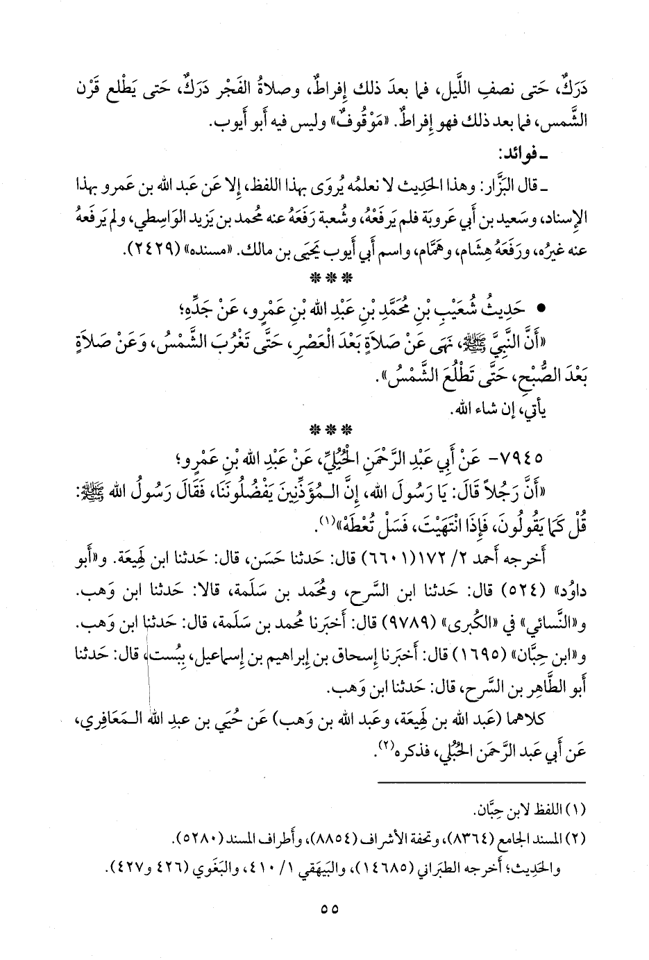 أخرجه أحمد (٦٦٠١) قال: حدثنا حسن، قال: حدثنا ابن لَهِيعة. و «أَبو داود» (٥٢٤) قال: حدثنا ابن السَّرح، ومحمد بن سلمة، قالا: حدثنا ابن وهب. و «النَّسَائي» في «الكبرى» (٩٧٨٩) قال: أخبرنا محمد بن سلمة، قال: حدثنا ابن وهب. و «ابن حِبَّان» (١٦٩٥) قال: أخبرنا إسحاق بن إبراهيم بن إسماعيل، ببست، قال: حدثنا أَبو الطاهر بن السَّرح، قال: حدثنا ابن وهب.