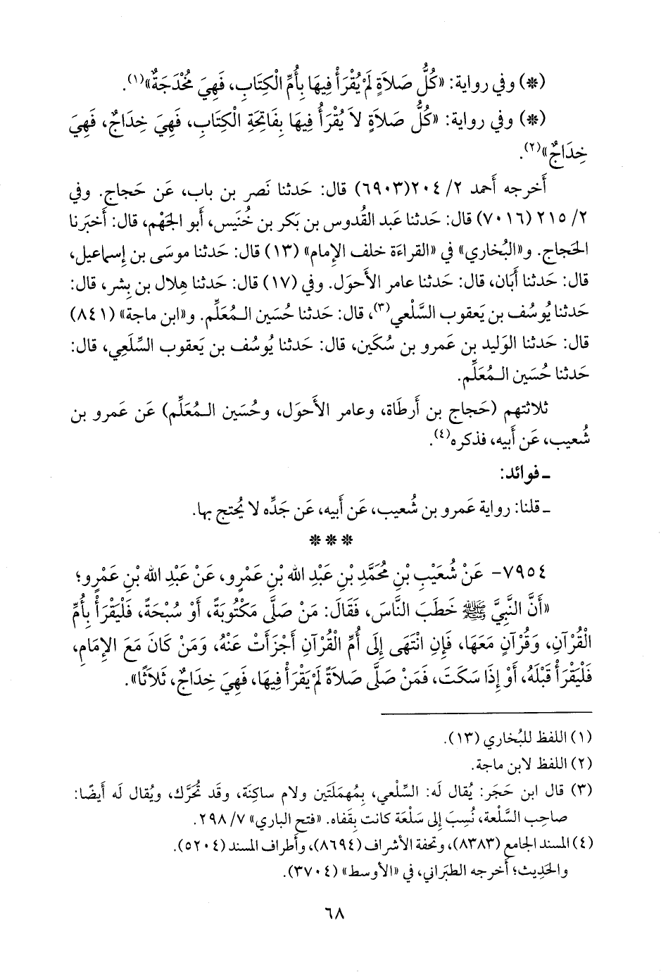 و «البخاري» في «القراءة خلف الإمام» (١٣) قال: حدثنا موسى بن إسماعيل، قال: حدثنا أبان، قال: حدثنا عامر الأحول. وفي (١٧) قال: حدثنا هلال بن بشر، قال: حدثنا يوسف بن يعقوب السلعي (¬١)، قال: حدثنا حسين المُعَلِّم. و «ابن ماجة» (٨٤١) قال: حدثنا الوليد بن عَمرو بن سكين، قال: حدثنا يوسف بن يعقوب السلعي، قال: حدثنا حسين المُعَلِّم.
