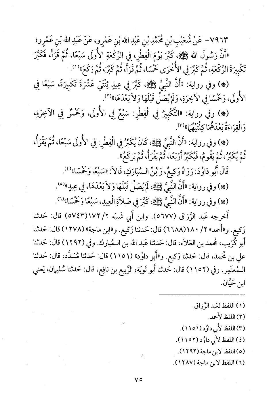 خمستهم (عبد الرزاق بن همام، ووكيع بن الجراح، وعبد الله بن المبارك، والمعتمر بن سليمان، وسليمان بن حَيَّان) عن عبد الله بن عبد الرحمن بن يعلى أبي يعلى الطائفي، عن عمرو بن شعيب، عن أبيه، فذكره (¬٦).