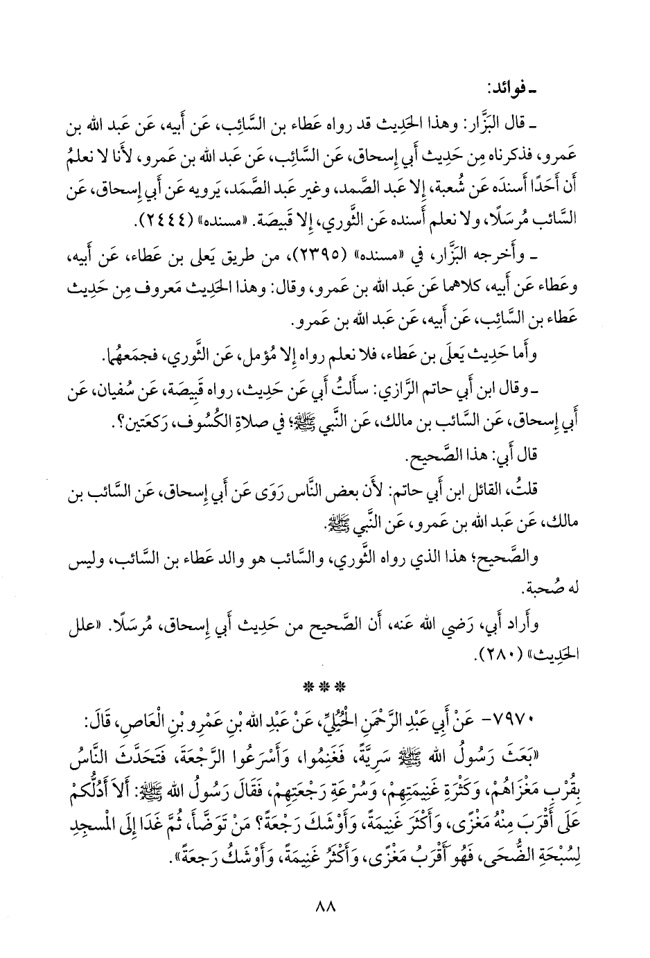 قلت، القائل ابن أبي حاتم: لأن بعض الناس روى عن أبي إسحاق، عن السائب بن مالك، عن عبد الله بن عَمرو، عن النبي صَلى الله عَليه وسَلم.