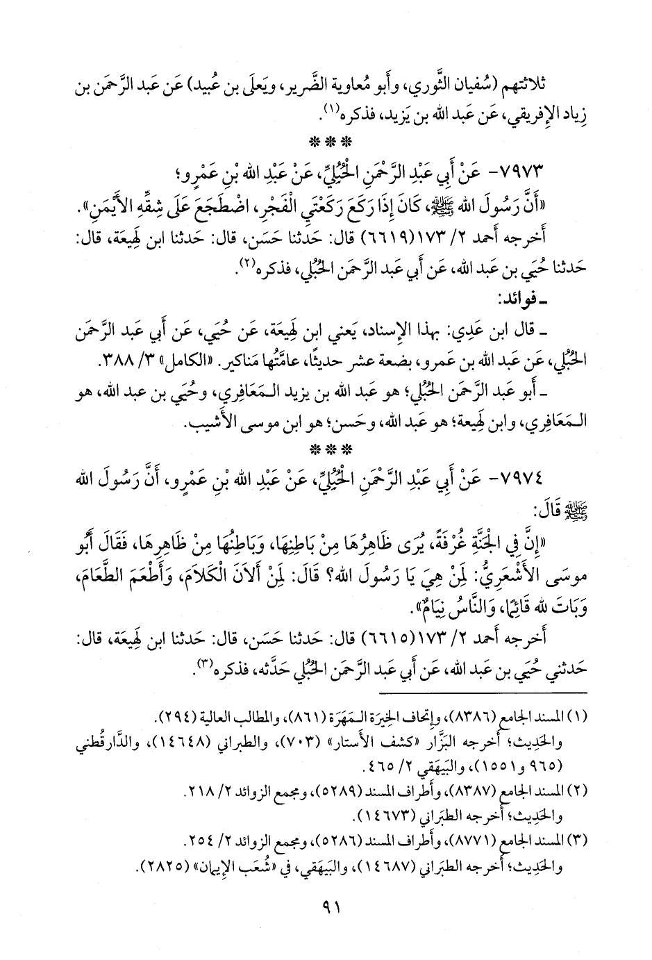 ٧٩٧٤ - عن أبي عبد الرَّحمَن الحبلي، عن عبد الله بن عَمرو، أن رسول الله صَلى الله عَليه وسَلم قال: