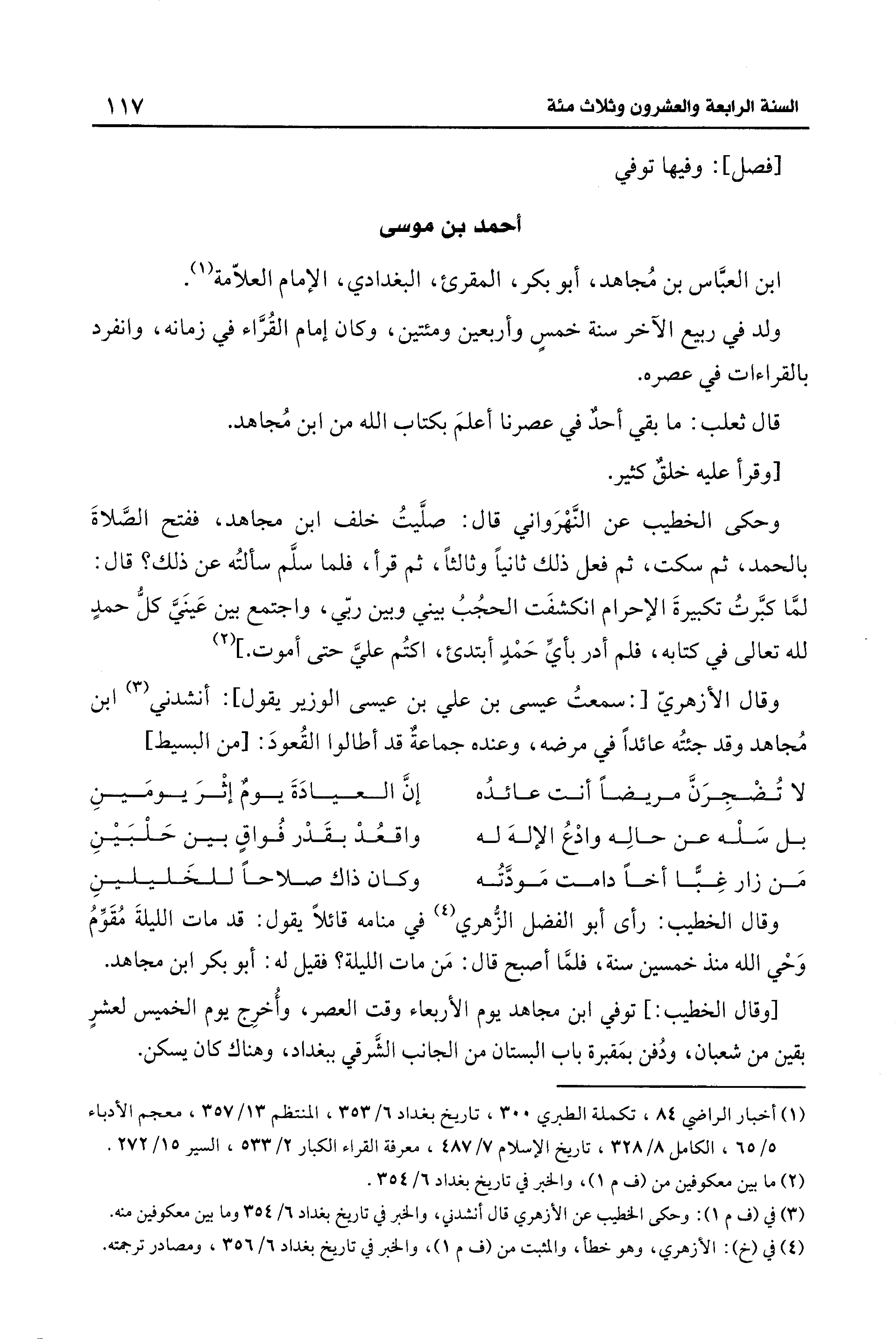 (¬1) أخبار الراضي 84، تكملة الطبري 300، تاريخ بغداد 6/ 353، المنتظم 13/ 357، معجم الأدباء 5/ 65، الكامل 8/ 328، تاريخ الإسلام 7/ 487، معرفة القراء الكبار 2/ 533، السير 15/ 272.
