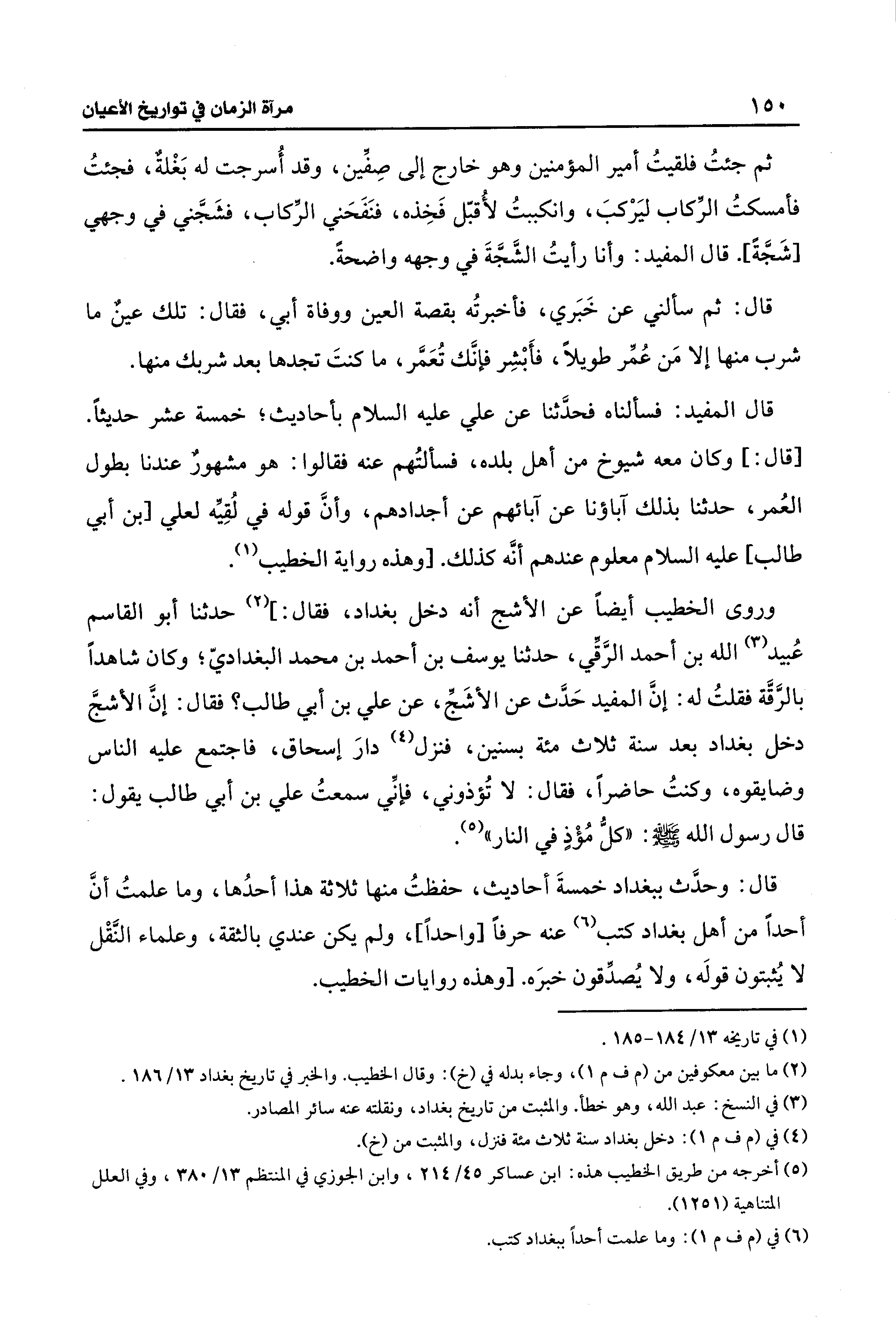 قال المفيد: فسألناه فحدَّثنا عن علي - عليه السلام - بأحاديث؛ خمسة عشر حديثًا.
