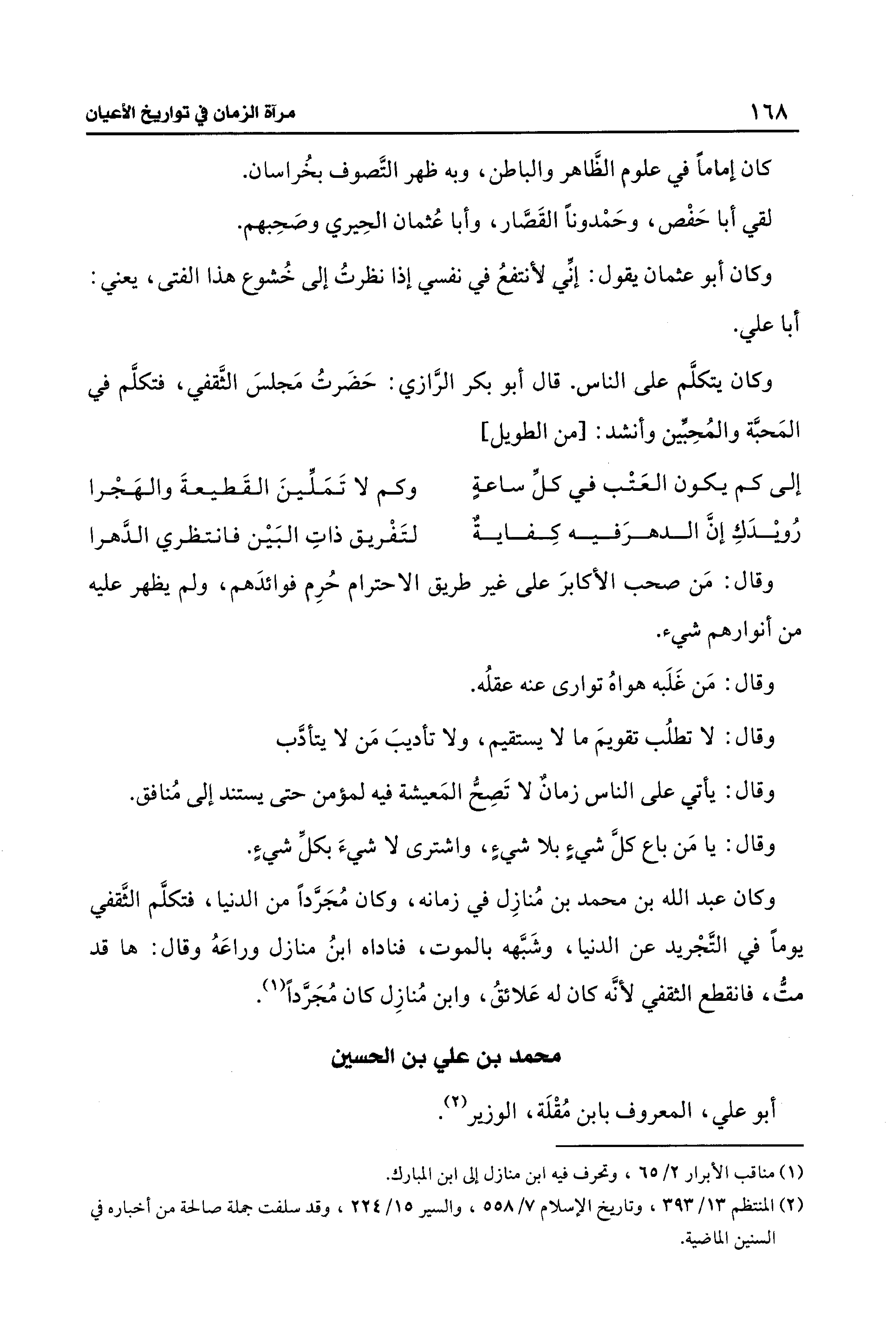 (¬1) مناقب الأبرار 2/ 65، وتحرف فيه ابن منازل إلى ابن المبارك.