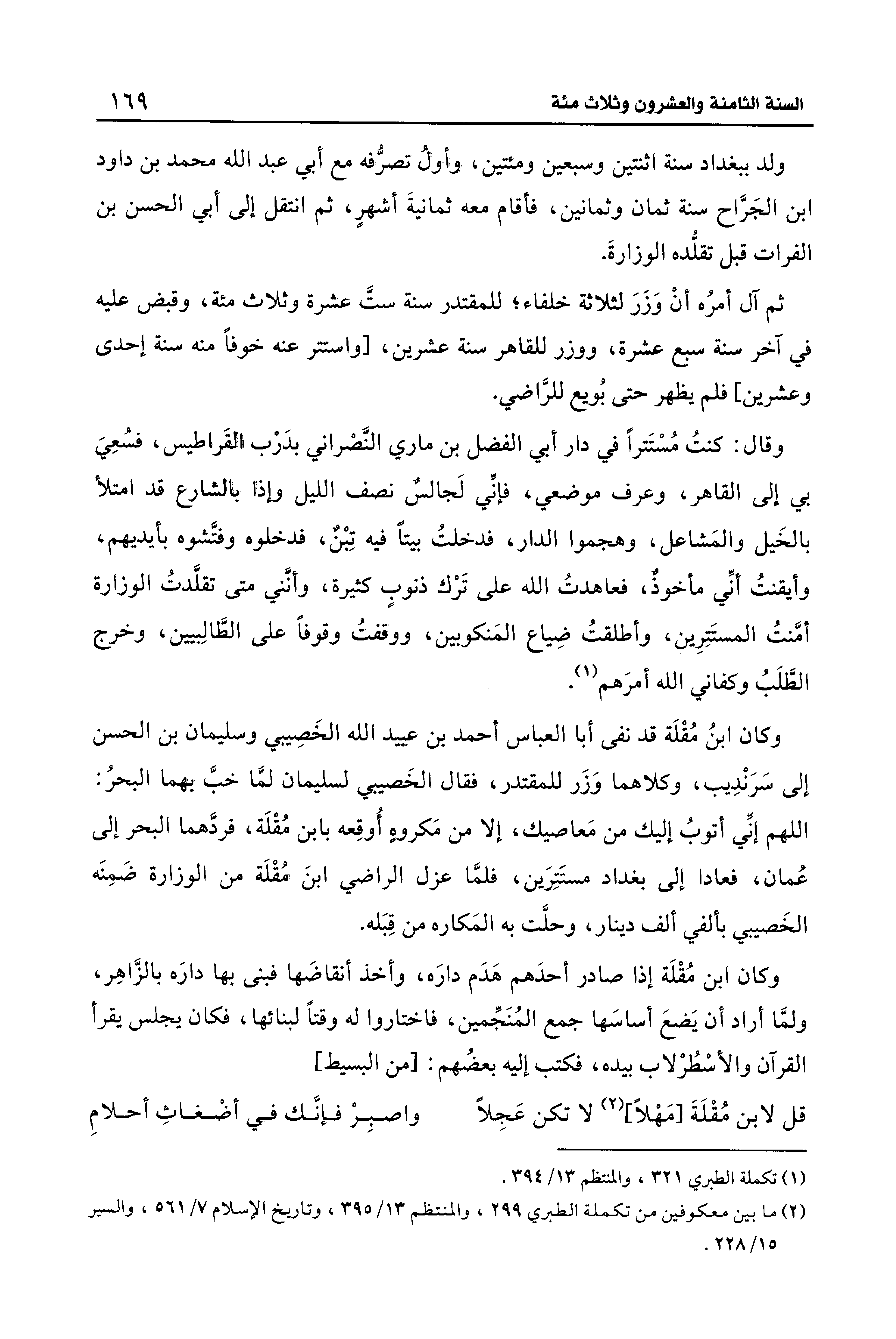 (¬1) تكملة الطبري 321، والمنتظم 13/ 394.