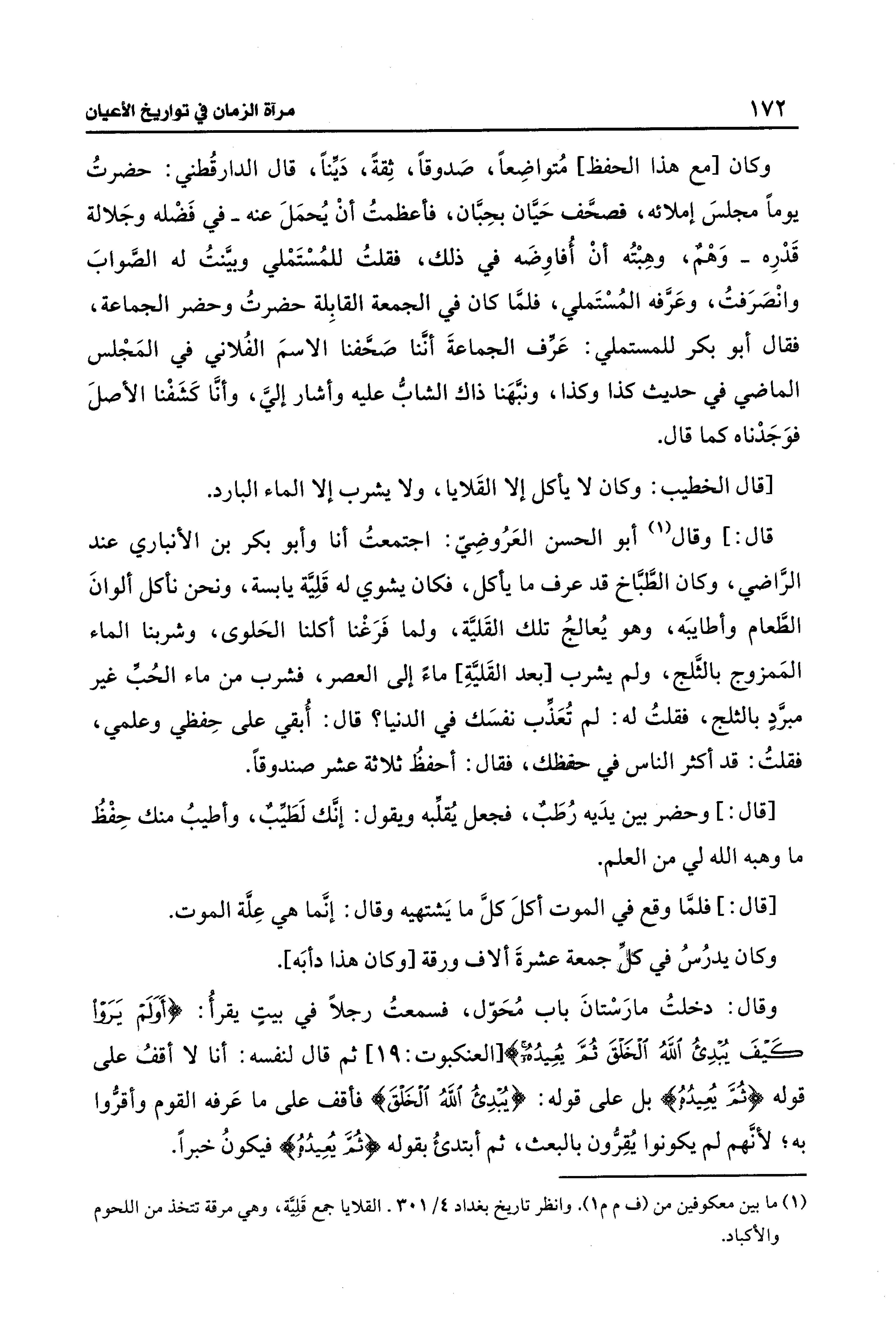 (¬1) ما بين معكوفين من (ف م م 1). وانظر تاريخ بغداد 4/ 301. القلايا جمع قَلِية، وهي مرقة تتخذ من اللحوم والأكباد.