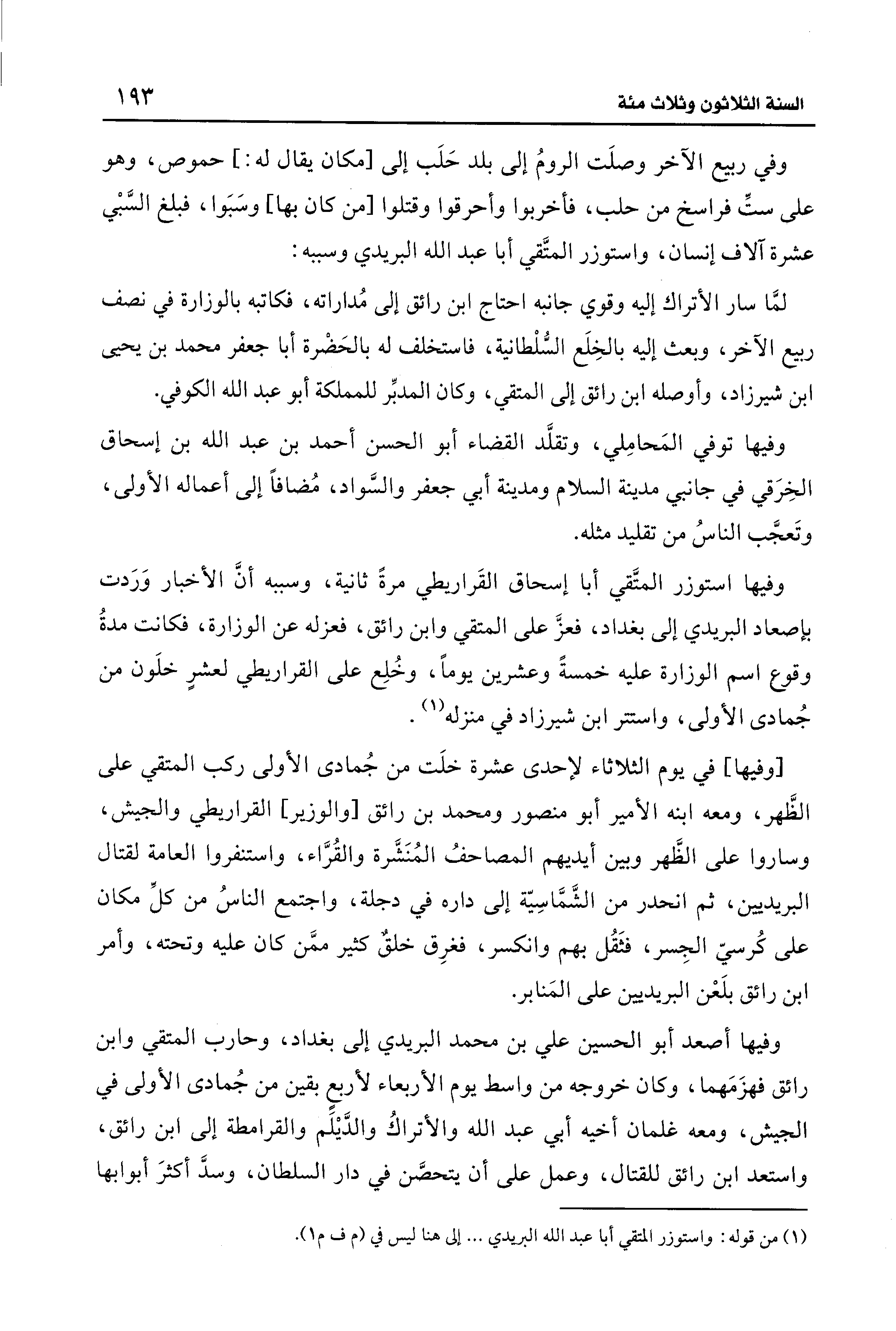 (¬1) من قوله: واستوزر المتقي أبا عبد الله البريدي ... إلى هنا ليس في (م ف م 1).