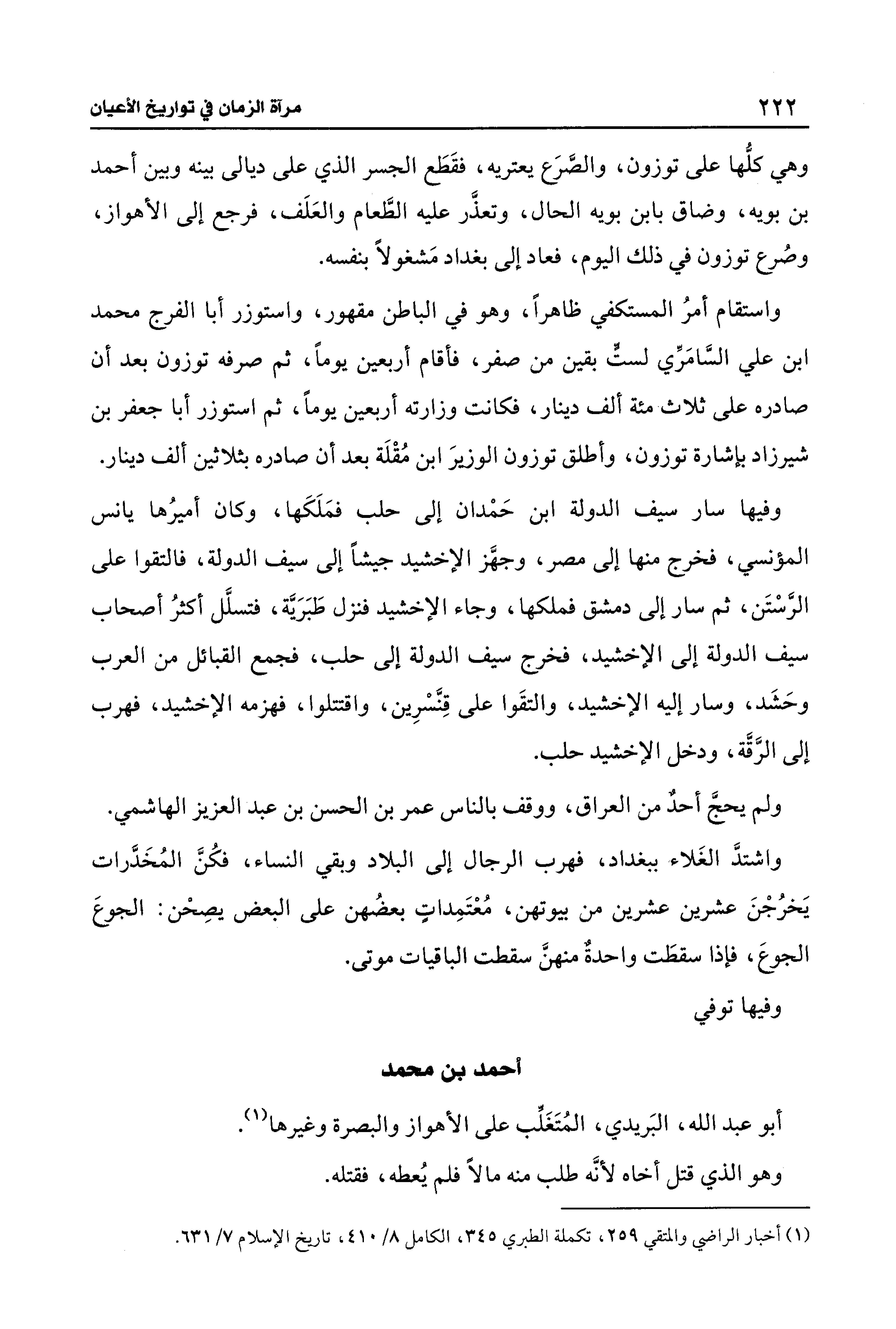 (¬1) أخبار الراضي والمتقي 259، تكملة الطبري 345، الكامل 8/ 410، تاريخ الإسلام 7/ 631.