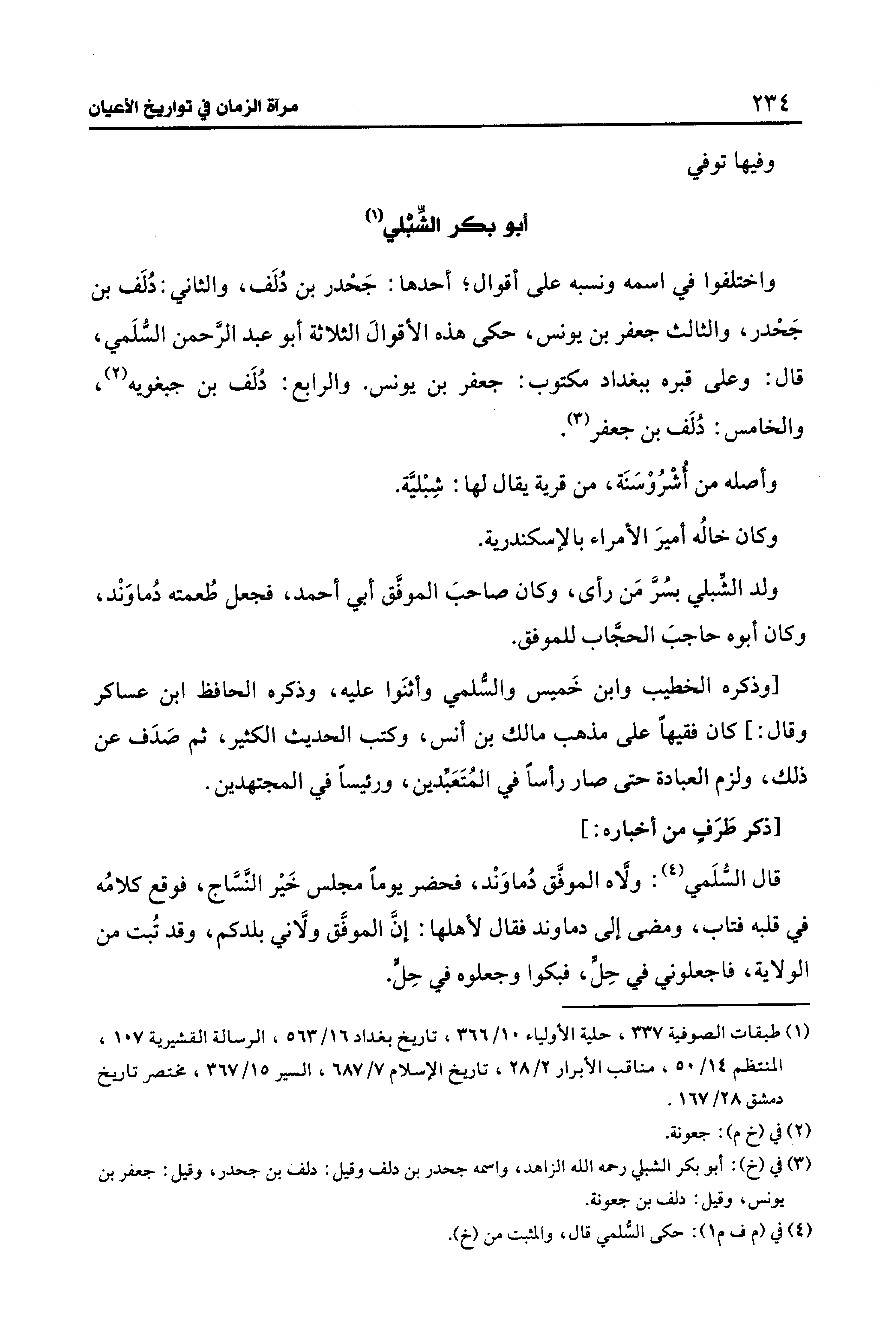 (¬3) في (خ): أبو بكر الشبلي رحمه الله الزاهد، واسمه جحدر بن دلف وقيل: دلف بن جحدر، وقيل: جعفر بن يونس، وقيل: دلف بن جعونة.
