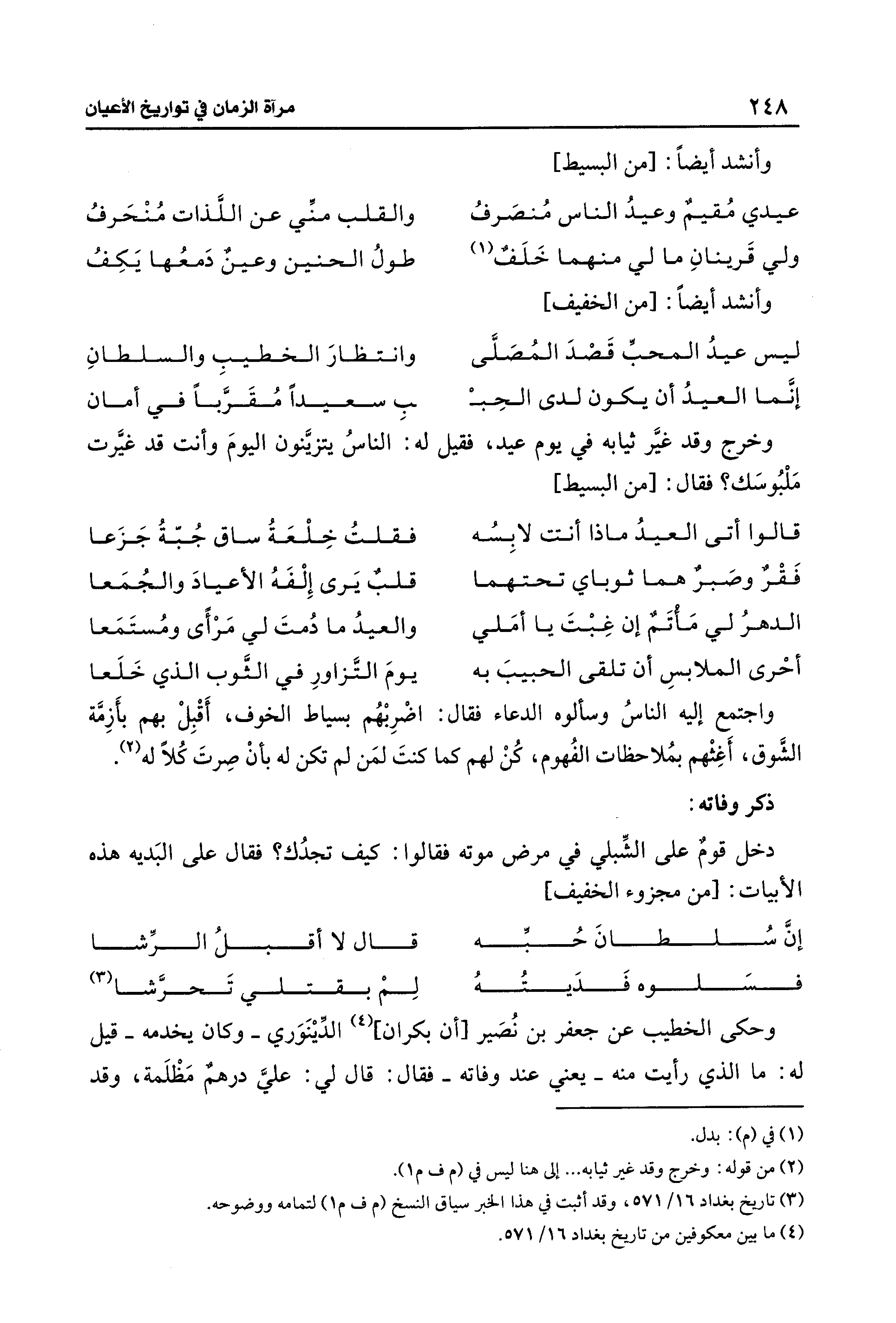 دخل قومٌ على الشِّبلي في مرض موته فقالوا: كيف تجدُك؟ فقال على البَديه هذه الأبيات: [من مجزوء الخفيف]