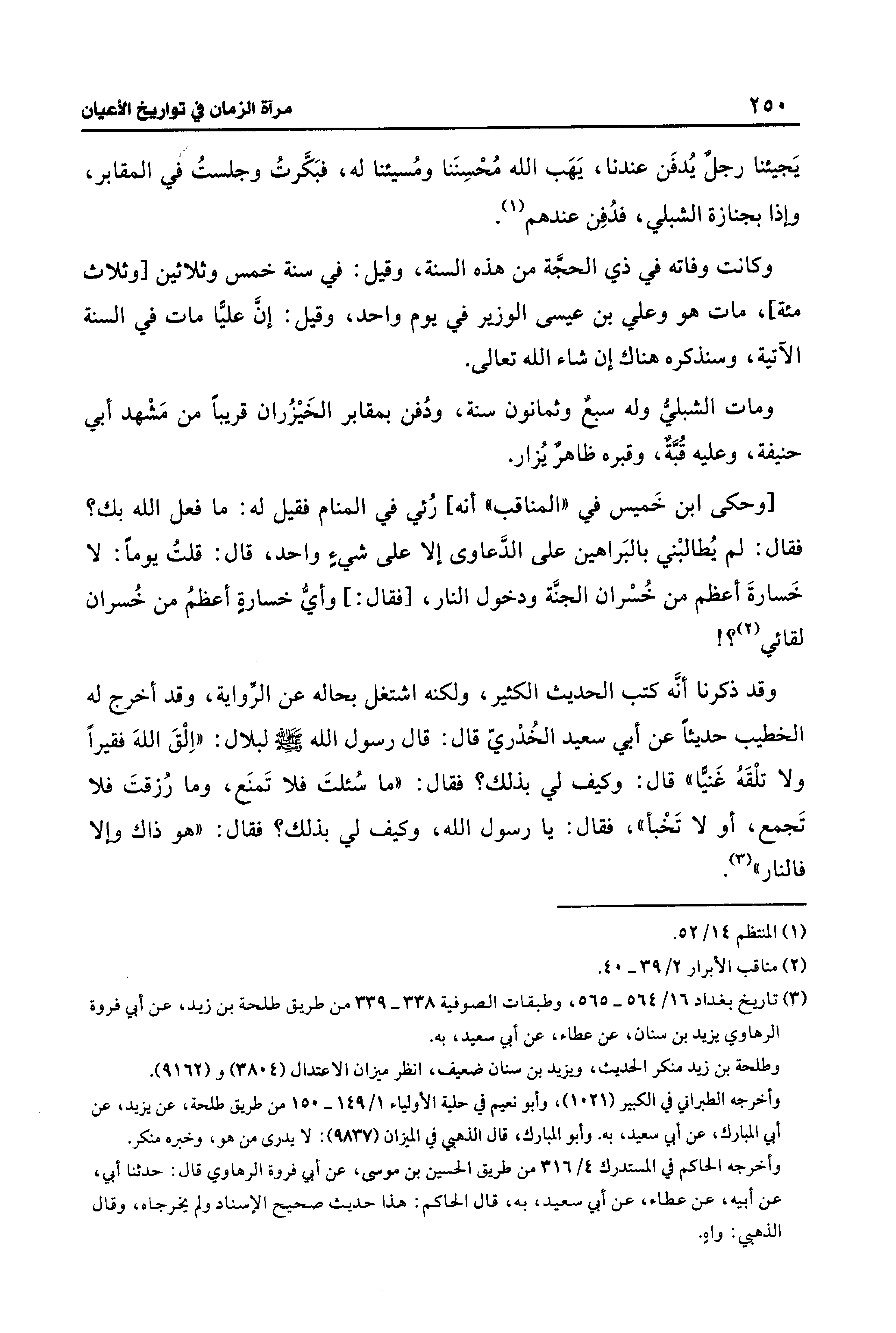 (¬3) تاريخ بغداد 16/ 564 - 565، وطبقات الصوفية 338 - 339 من طريق طلحة بن زيد، عن أبي فروة الرهاوي يزيد بن سنان، عن عطاء، عن أبي سعيد، به.