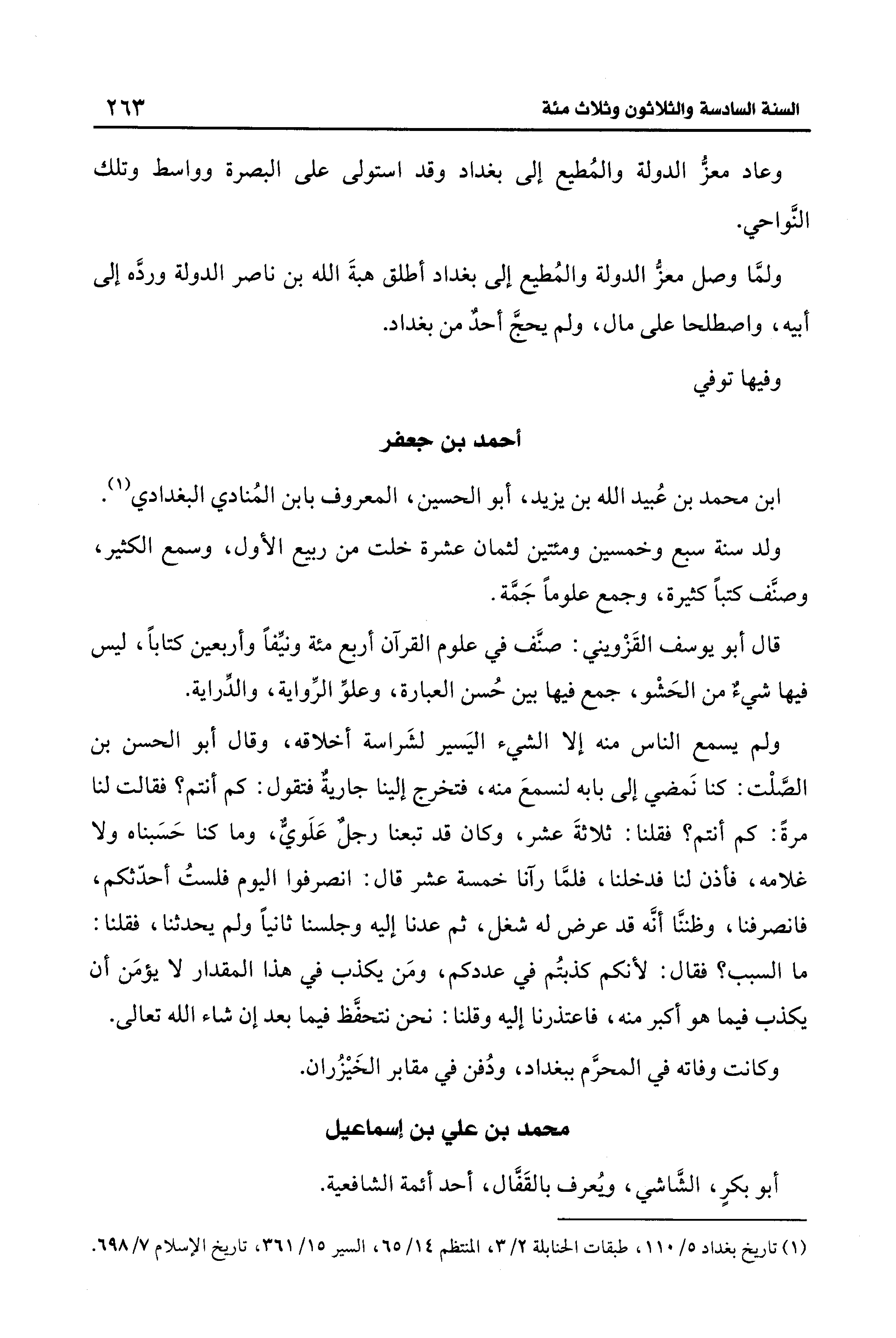 (¬1) تاريخ بغداد 5/ 110، طبقات الحنابلة 2/ 3، المنتظم 14/ 65، السير 15/ 361، تاريخ الإسلام 7/ 698.