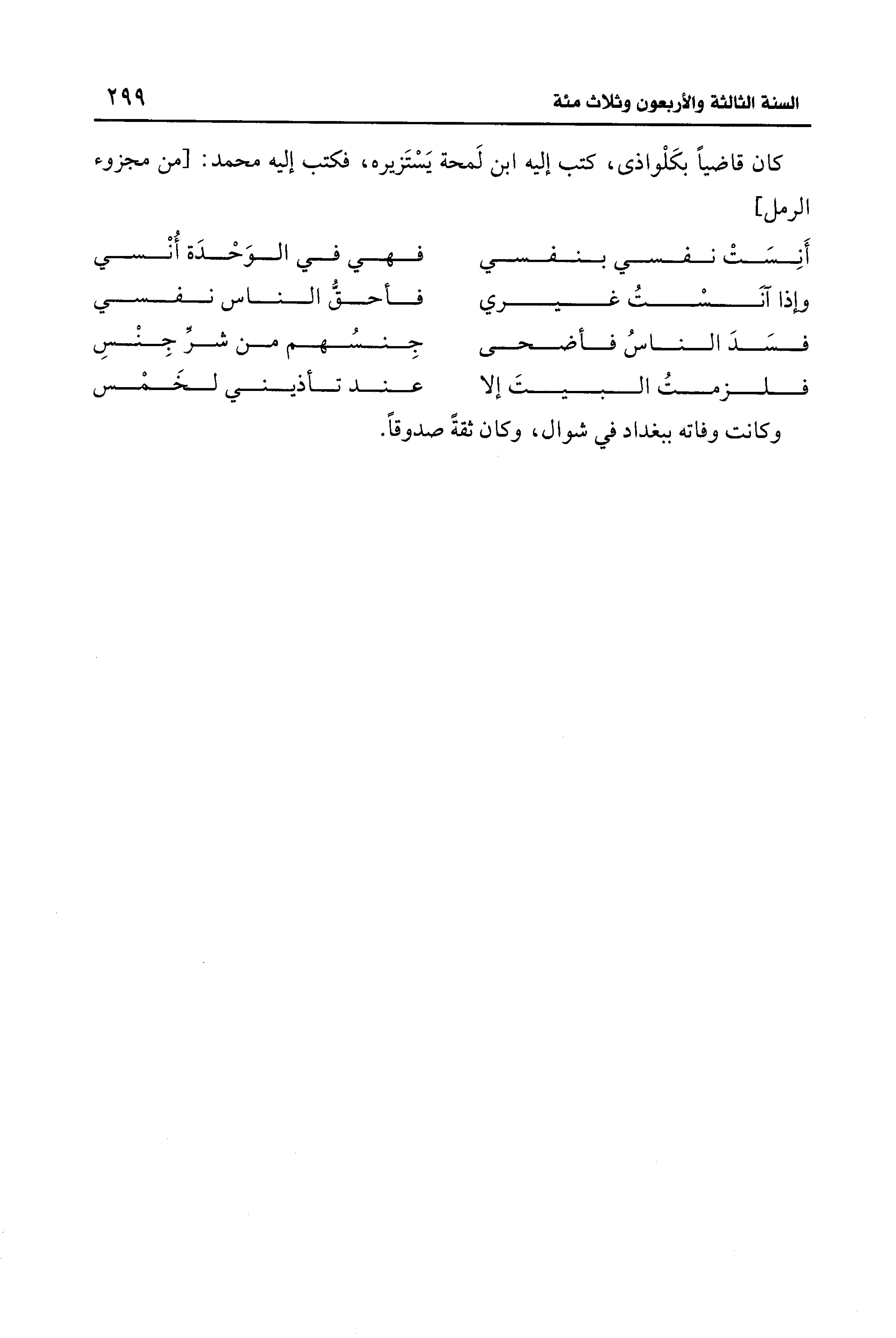 أَنِسَتْ نفسي بنفسي ... فهي في الوَحْدَة أُنْسي