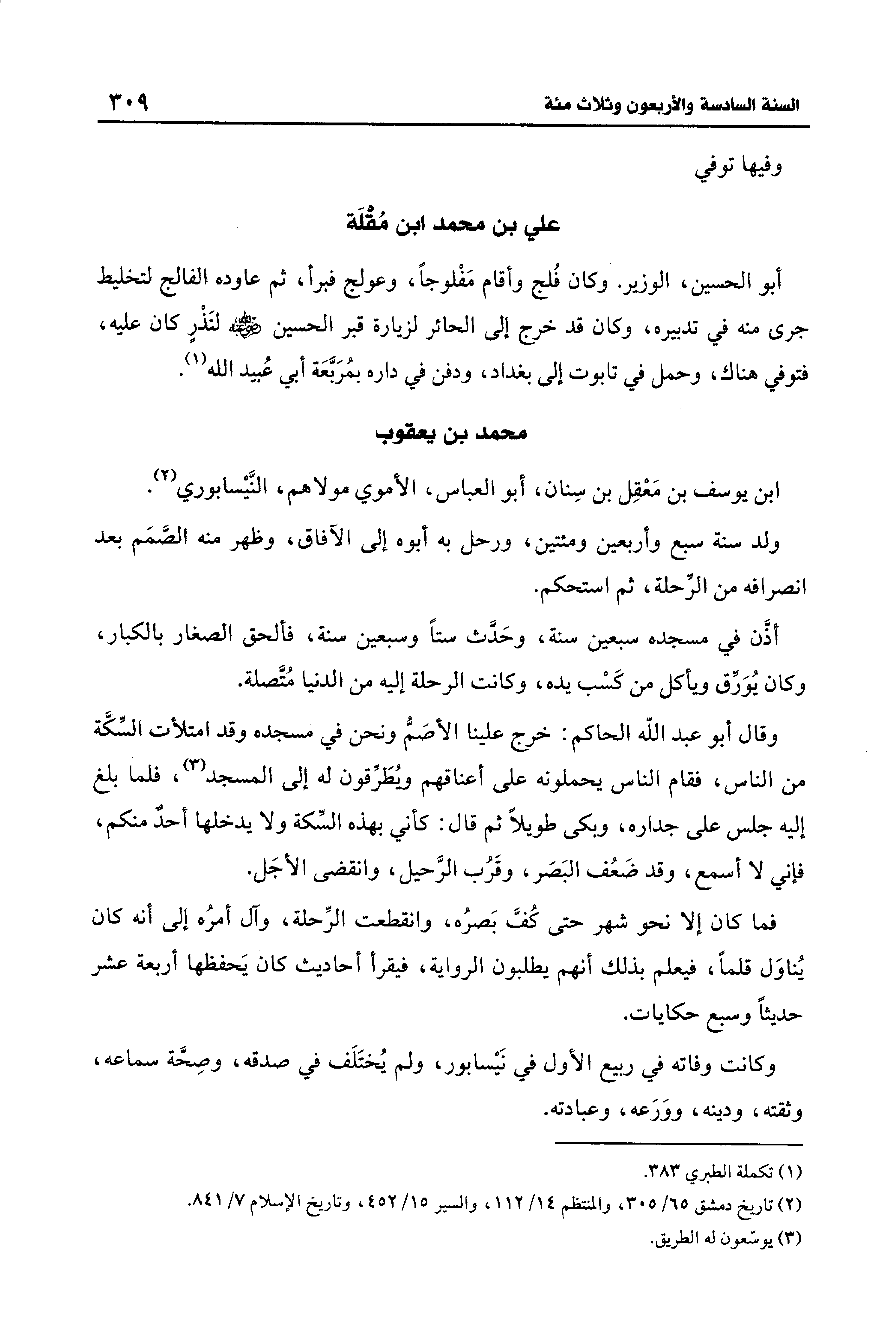 (¬2) تاريخ دمشق 65/ 305، والمنتظم 14/ 112، والسير 15/ 452، وتاريخ الإسلام 7/ 841.