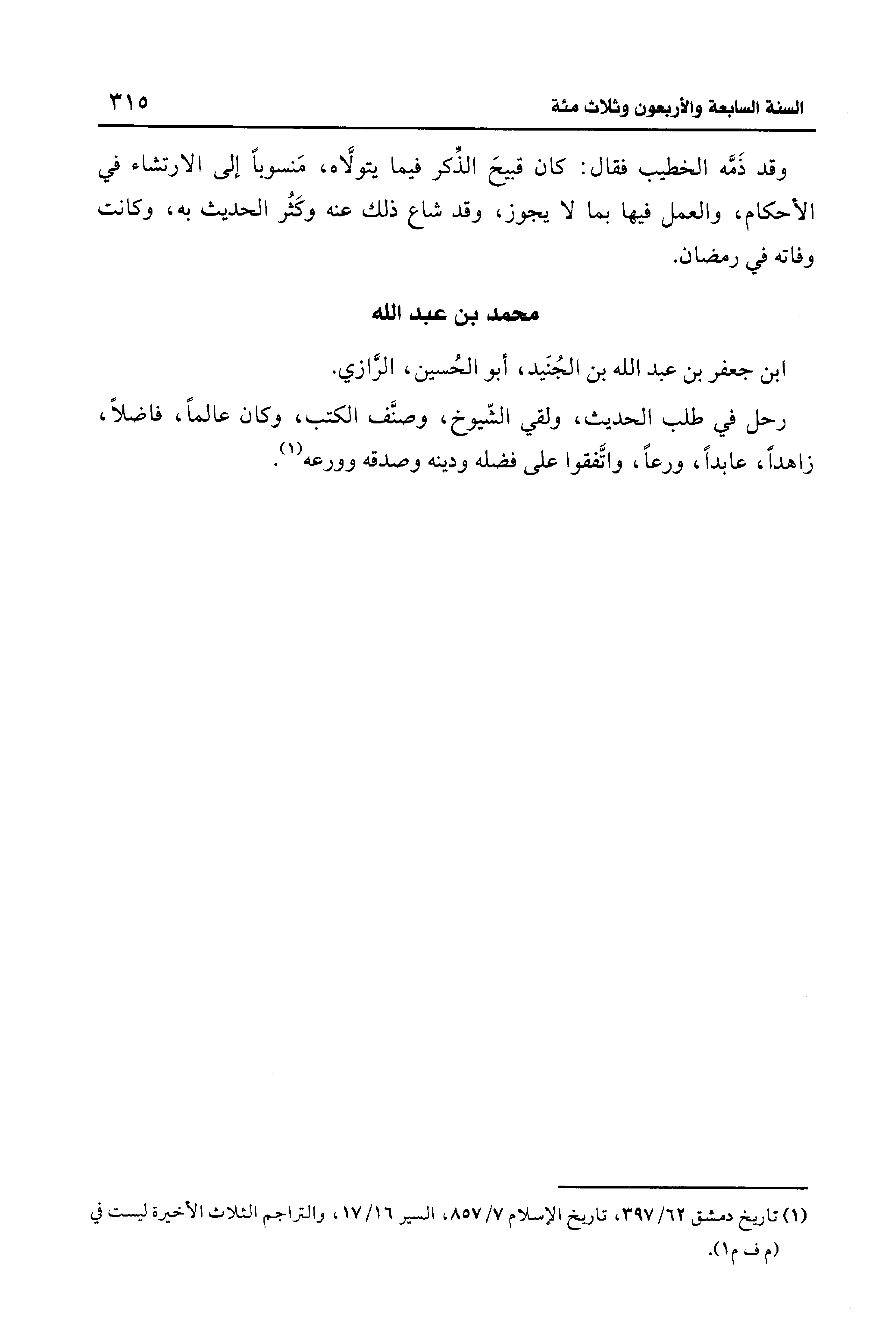 ابن جعفر بن عبد الله بن الجُنَيد، أبو الحُسين، الرَّازي.