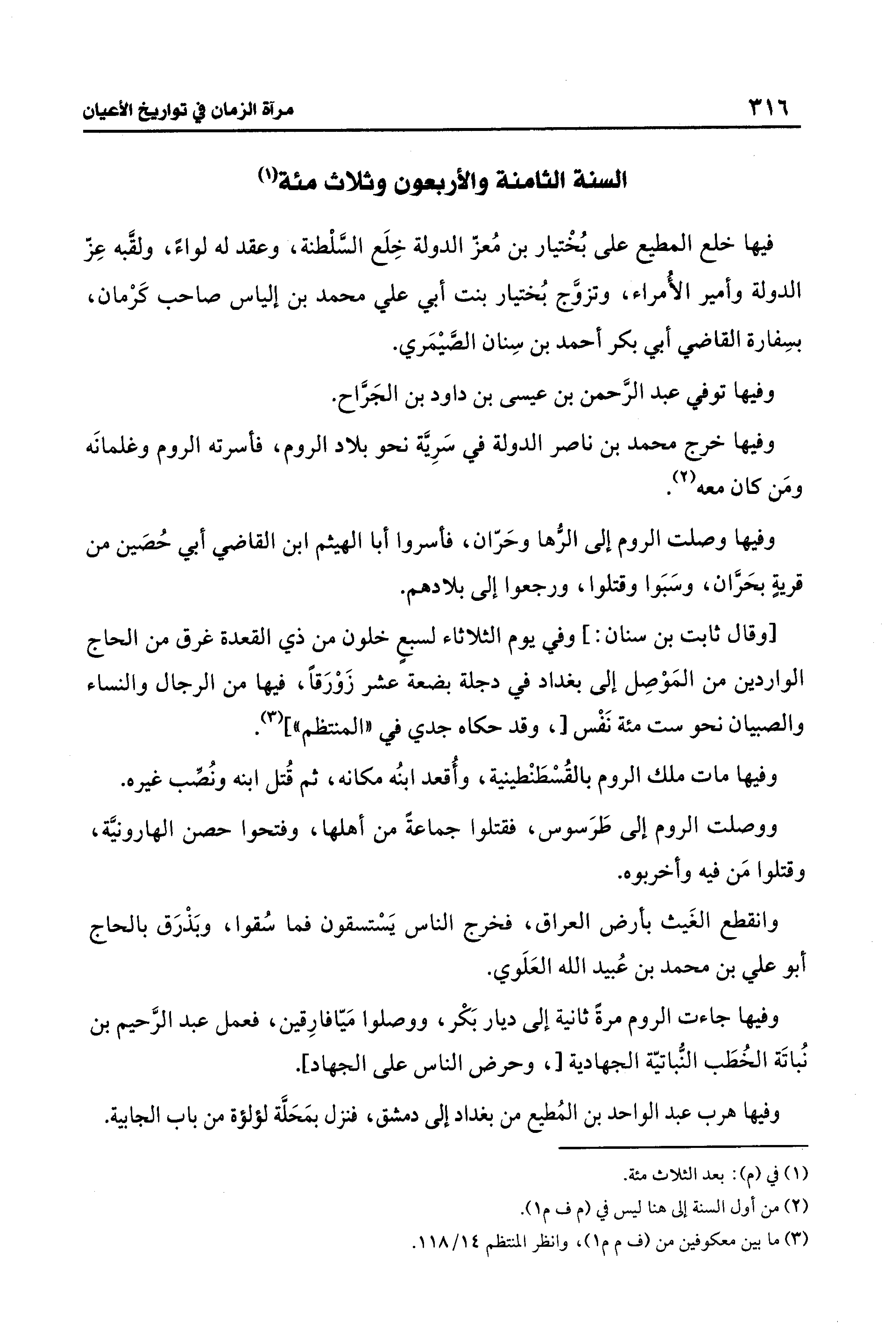 وفيها وصلت الروم إلى الرُّها وحَرّان، فأسروا أبا الهيثم ابن القاضي أبي حُصَين من قريةِ بحَرَّان، وسَبَوا وقتلوا، ورجعوا إلى بلادهم.