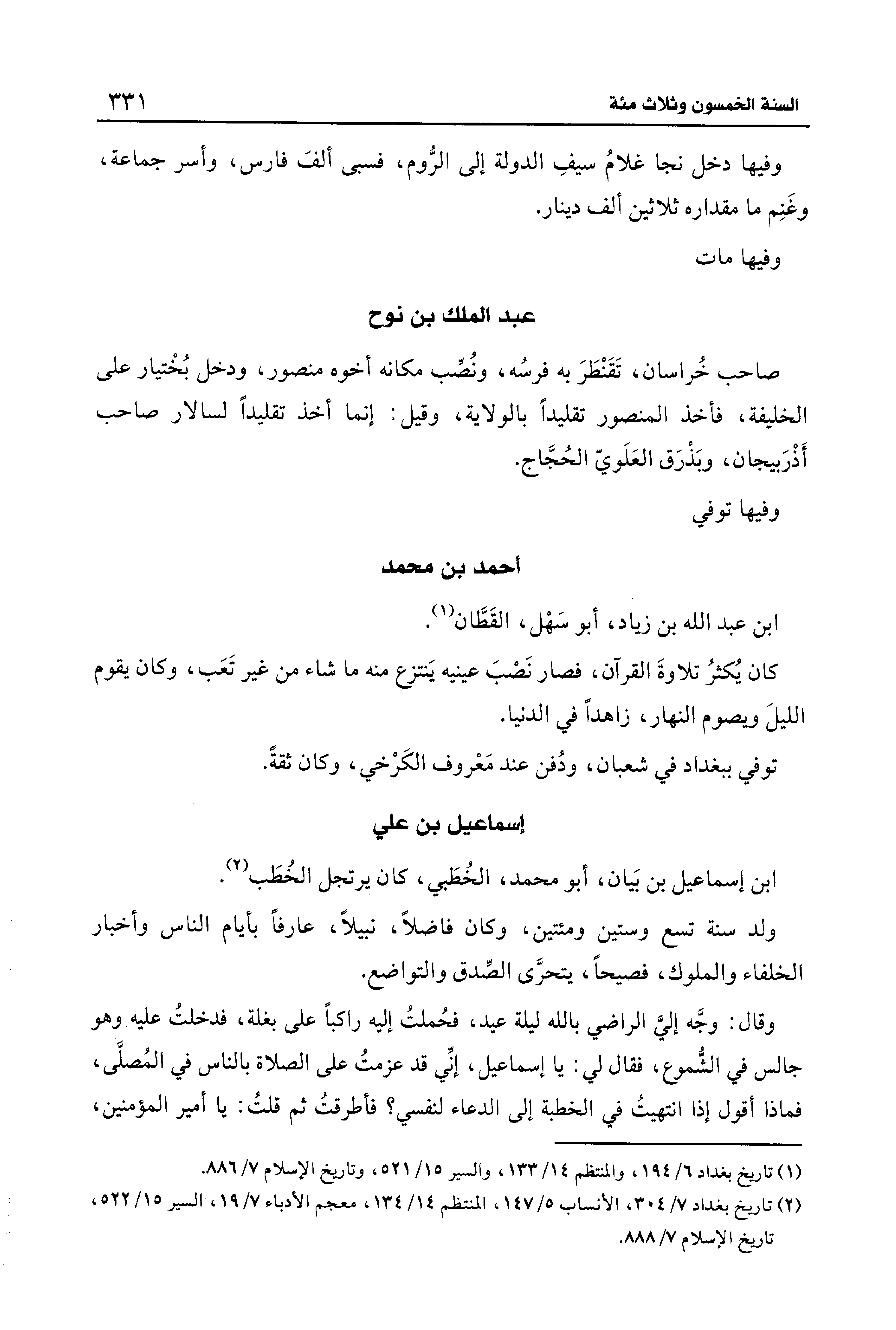 وفيها دخل نجا غلامُ سيفِ الدولة إلى الرُّوم، فسبى ألفَ فارس، وأسر جماعة، وغَنِم ما مقداره ثلاثين ألف دينار.