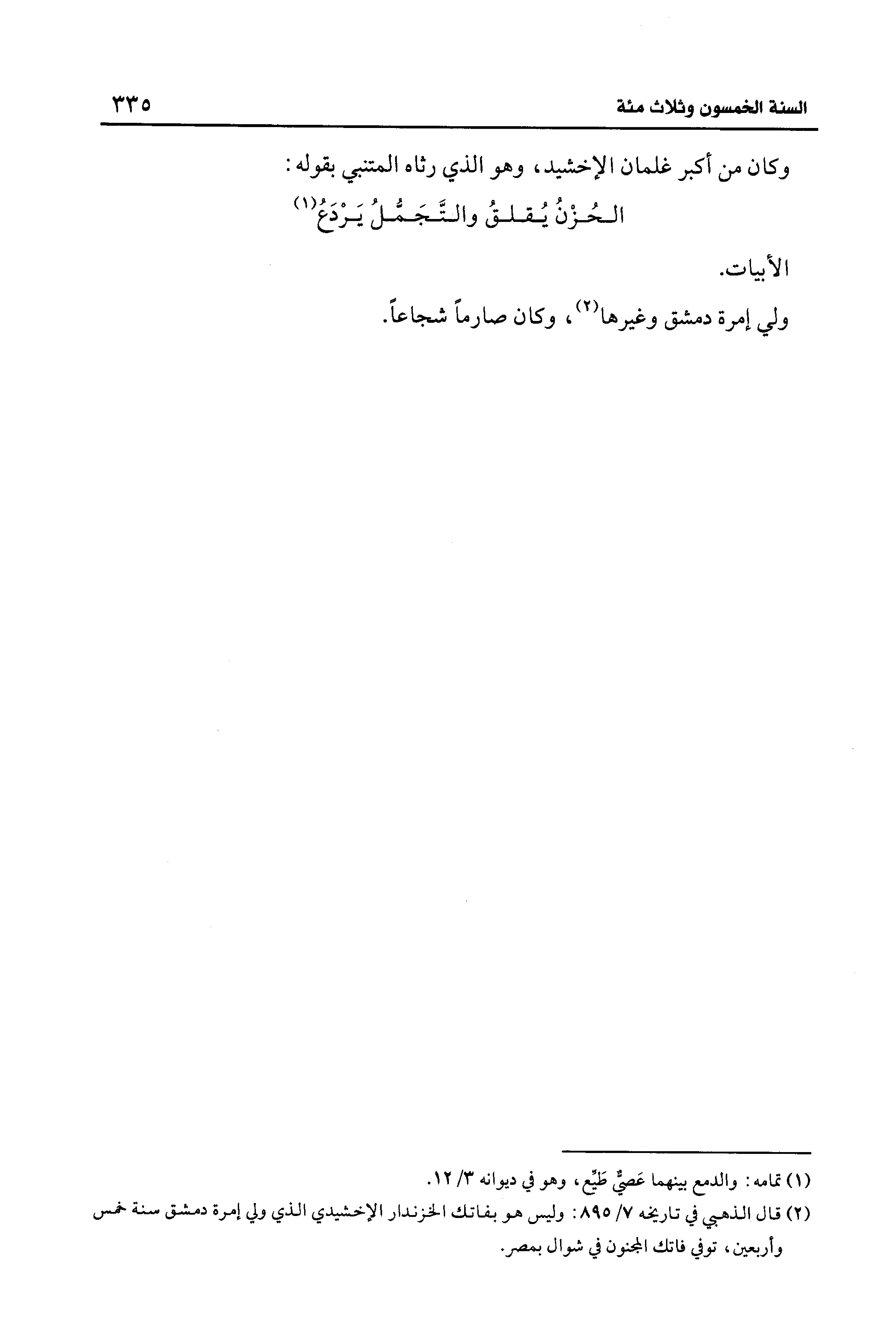 (¬2) قال الذهبي في تاريخه 7/ 895: وليس هو بفاتك الخزندار الإخشيدي الذي ولي إمرة دمشق سنة خمس وأربعين، توفي فاتك المجنون في شوال بمصر.