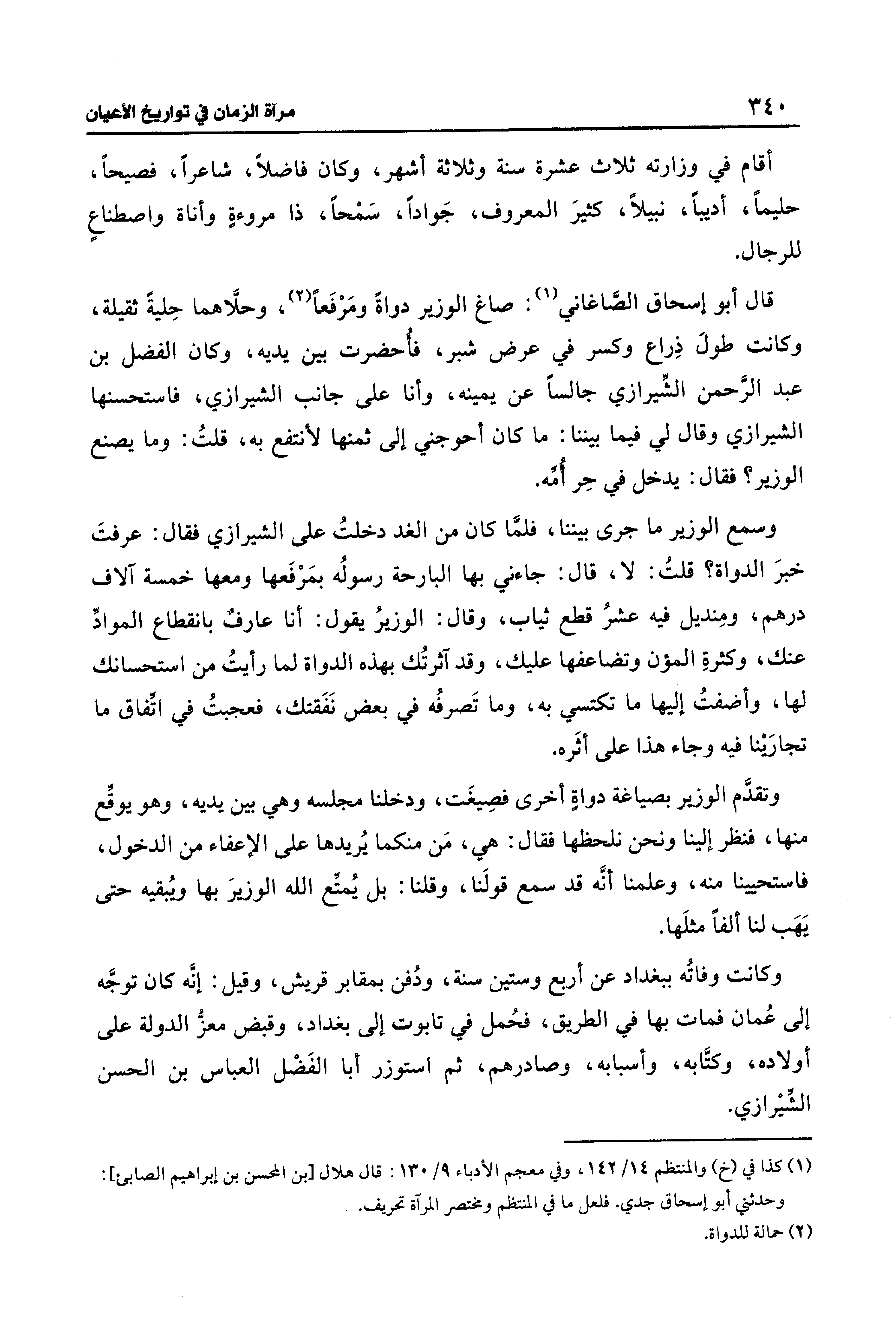 (¬1) كذا في (خ) والمنتظم 14/ 142، وفي معجم الأدباء 9/ 130: قال هلال [بن المحسن بن إبراهيم الصابئ]: وحدثني أبو إسحاق جدي. فلعل ما في المنتظم ومختصر المرآة تحريف.