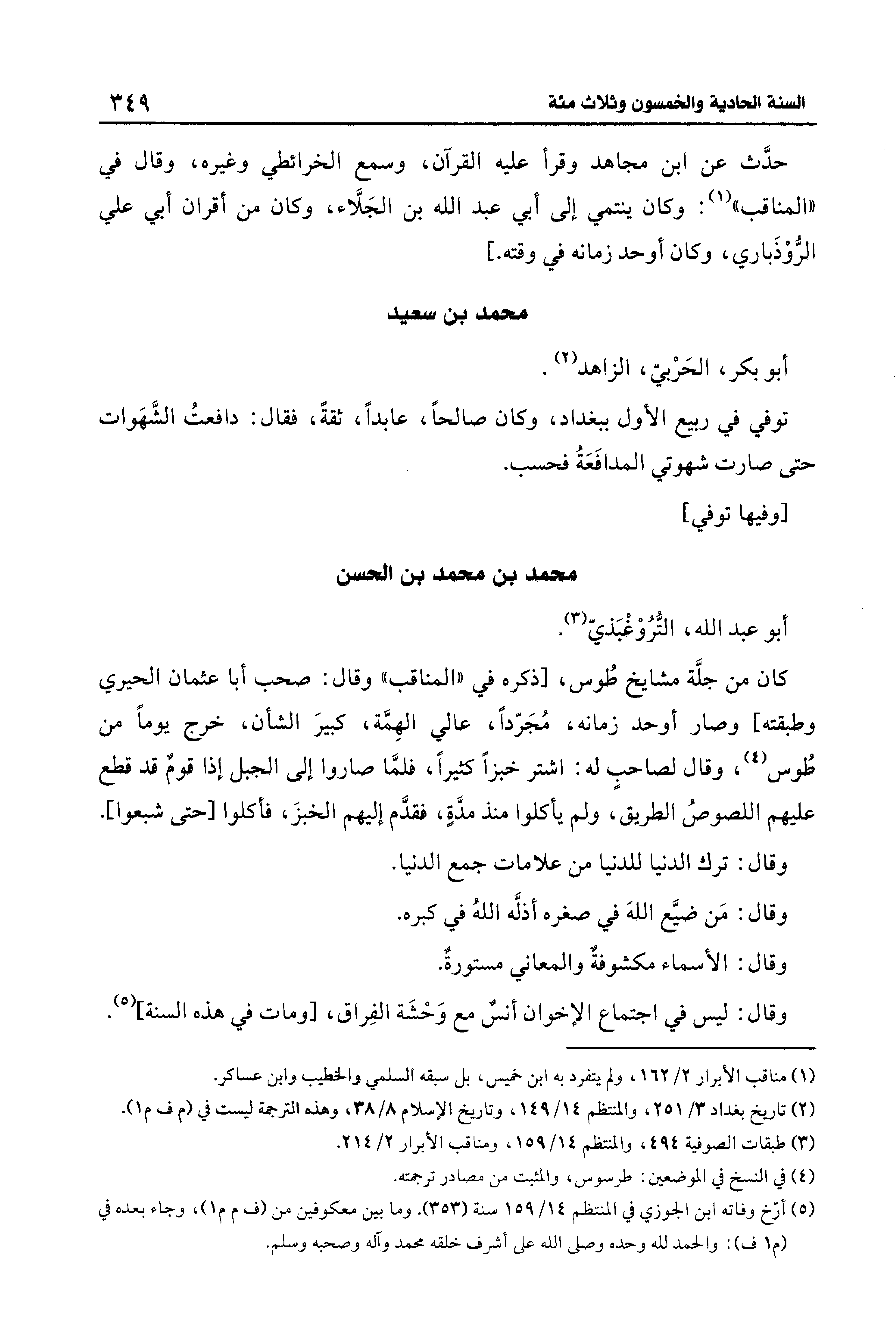 (¬3) طبقات الصوفية 494، والمنتظم 14/ 159، ومناقب الأبرار 2/ 214.