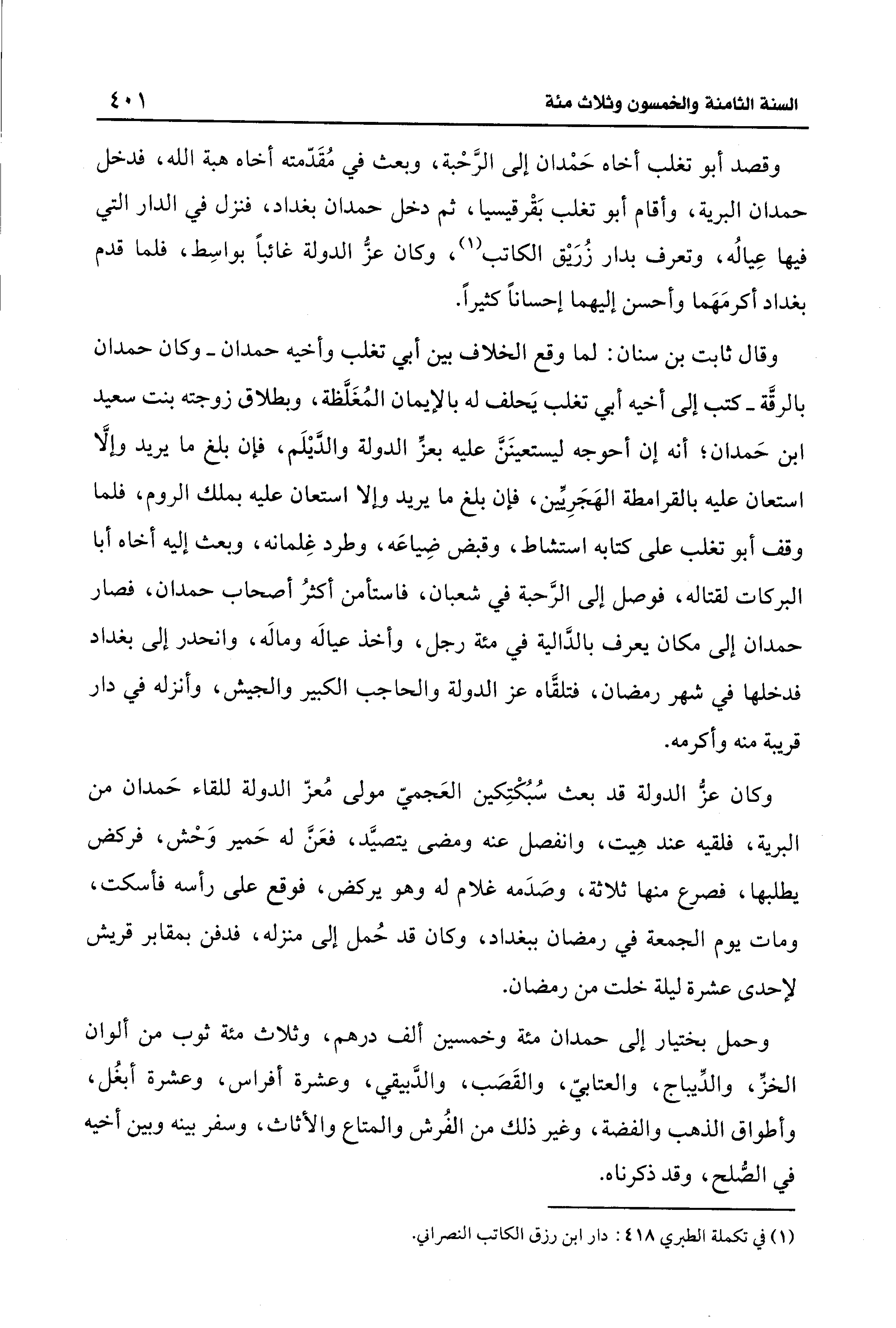 (¬1) في تكملة الطبري 418: دار ابن رزق الكاتب النصراني.