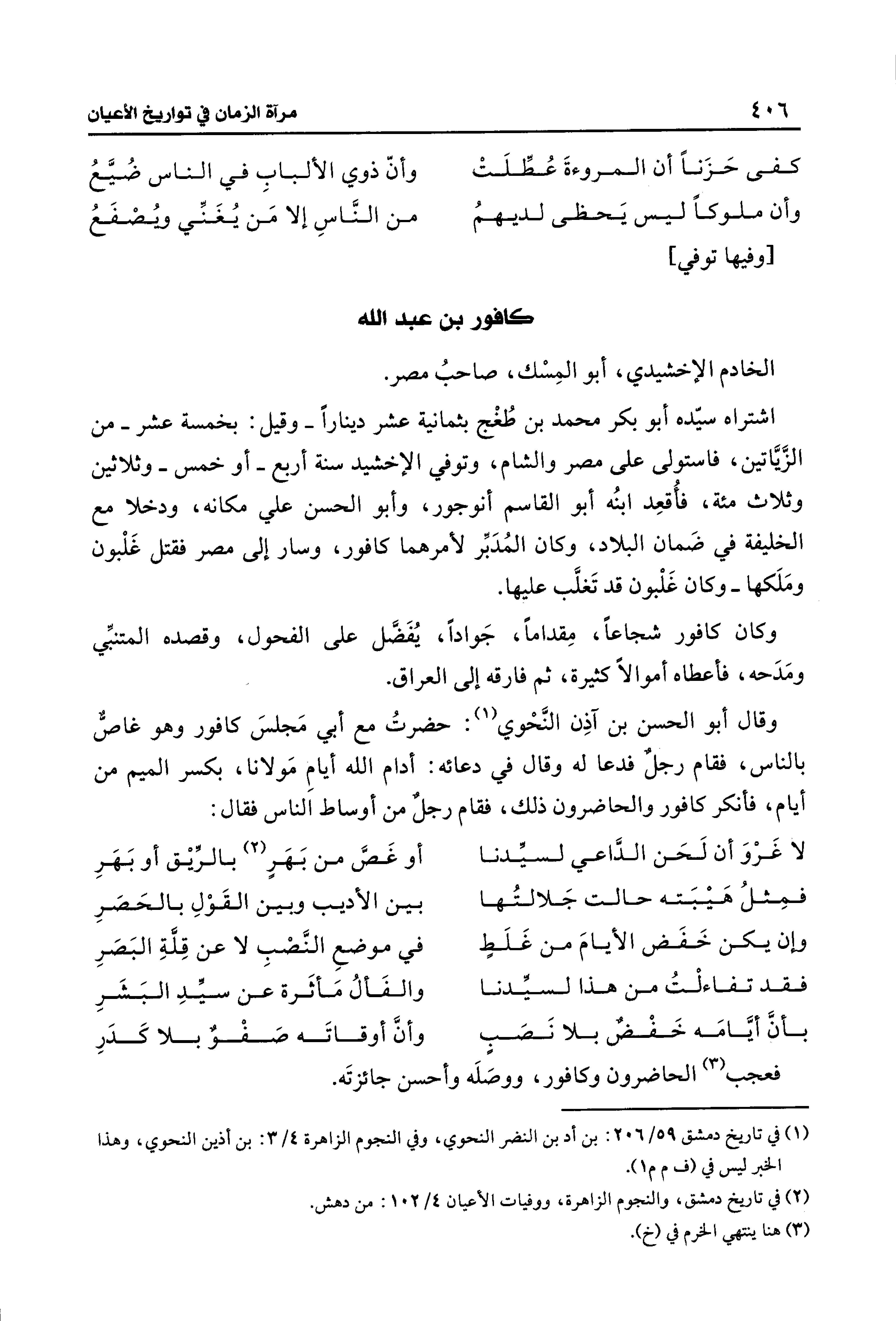 فعجب (¬3) الحاضرون وكافور، ووصَلَه وأحسن جائزتَه.