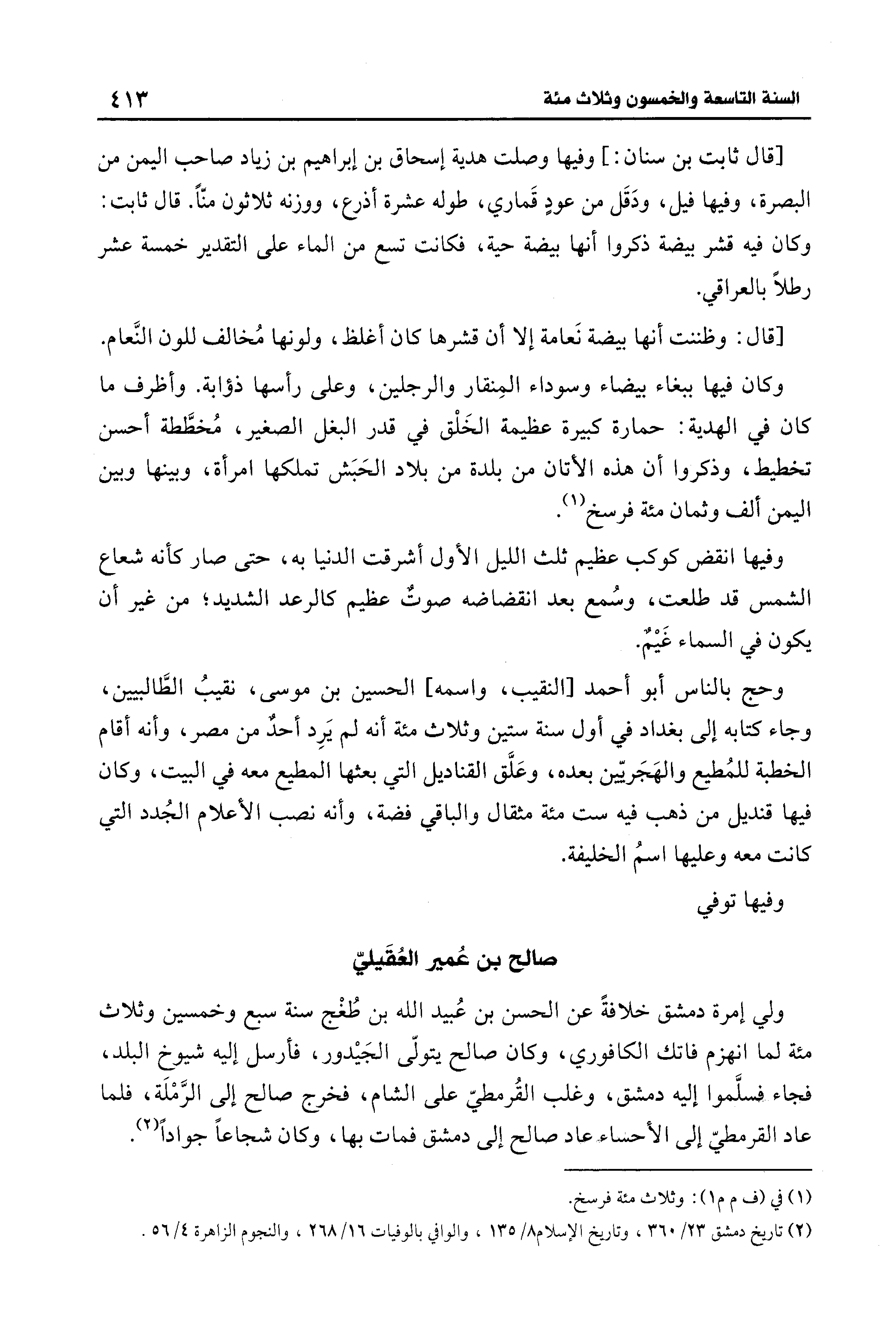 (¬2) تاريخ دمشق 23/ 360، وتاريخ الإسلام 8/ 135، والوافي بالوفيات 16/ 268، والنجوم الزاهرة 4/ 56.