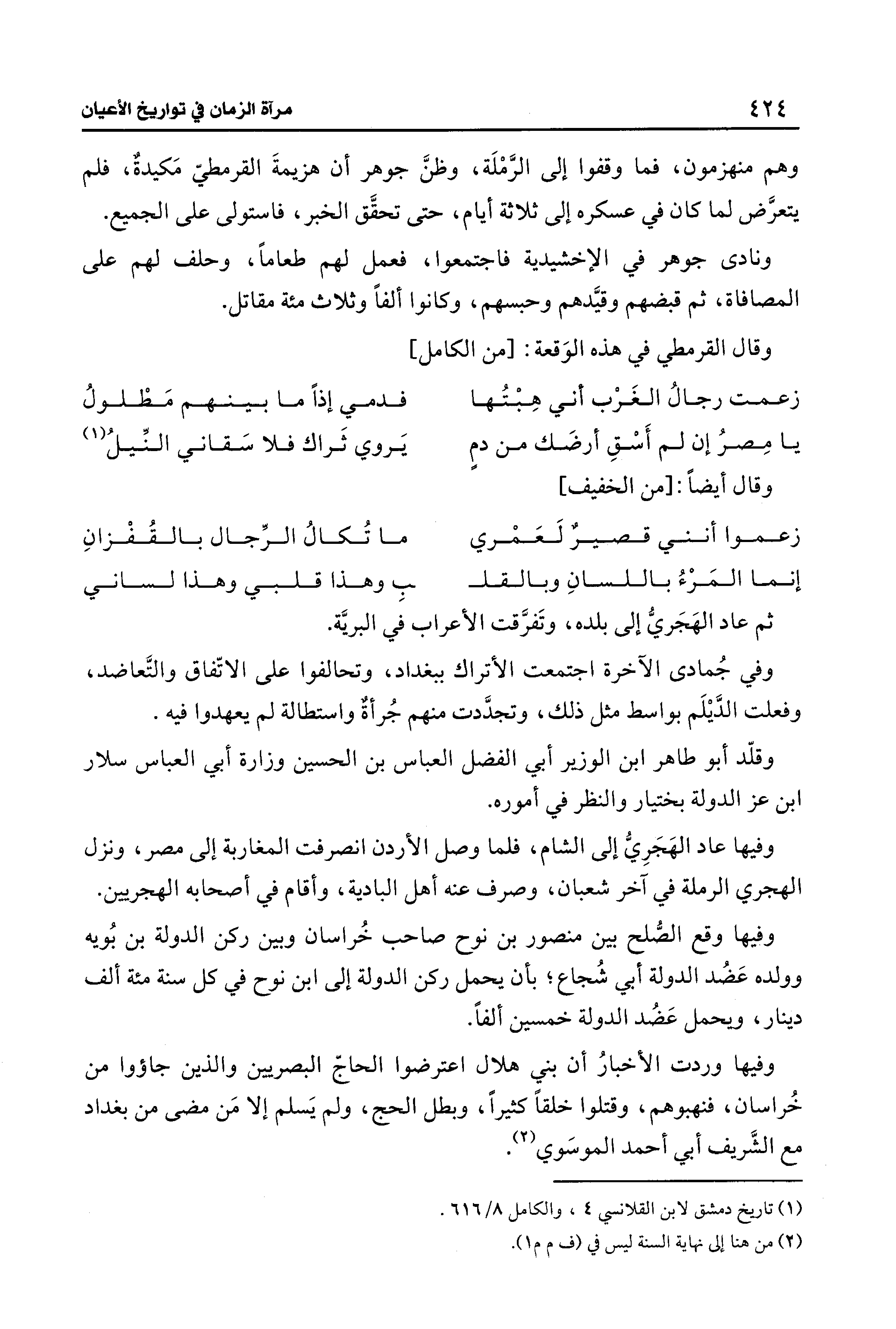(¬1) تاريخ دمشق لابن القلانسي 4، والكامل 8/ 616.