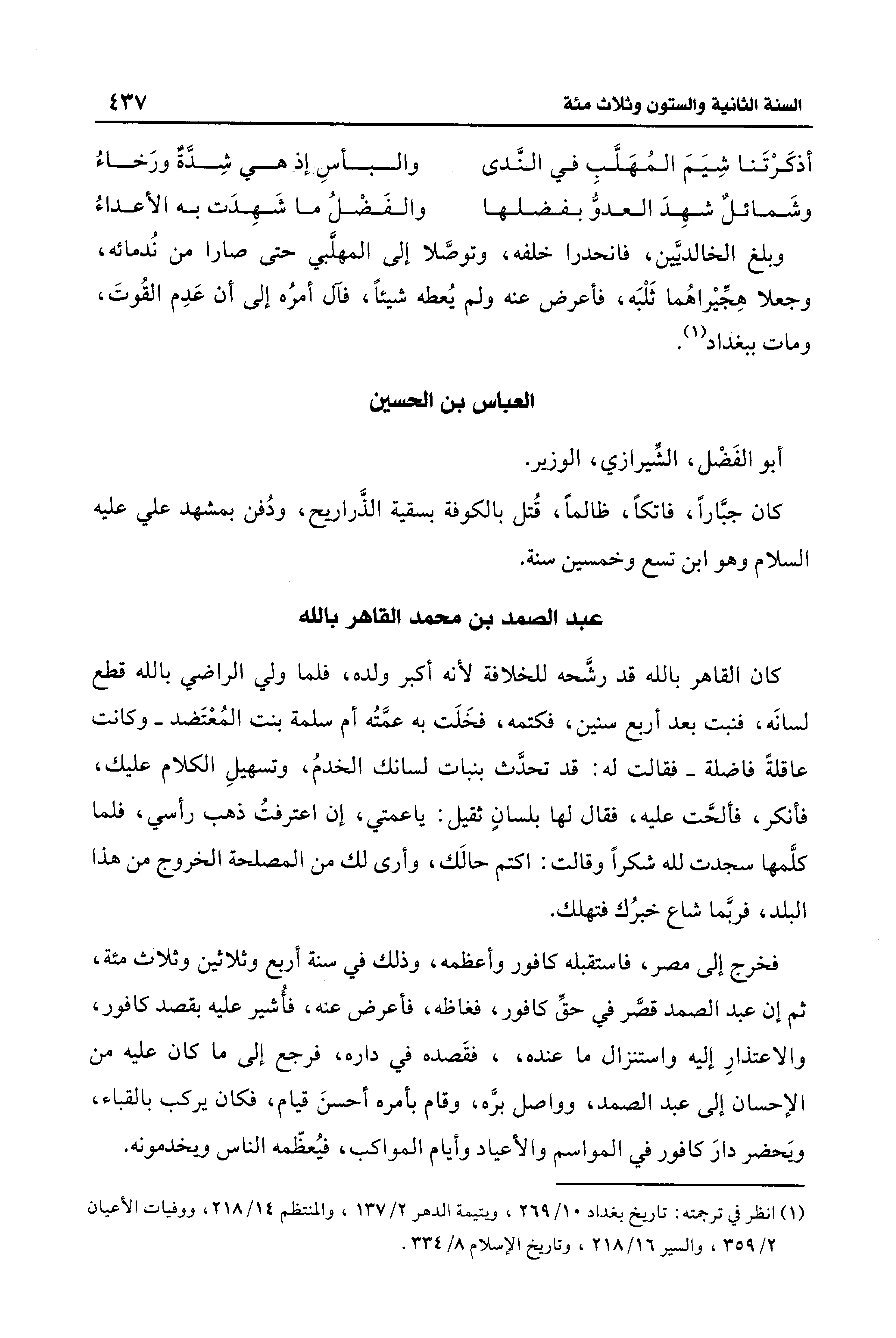 (¬1) انظر في ترجمته: تاريخ بغداد 10/ 269، ويتيمة الدهر 2/ 137، والمنتظم 14/ 218، ووفيات الأعيان 2/ 359، والسير 16/ 218، وتاريخ الإسلام 8/ 334.