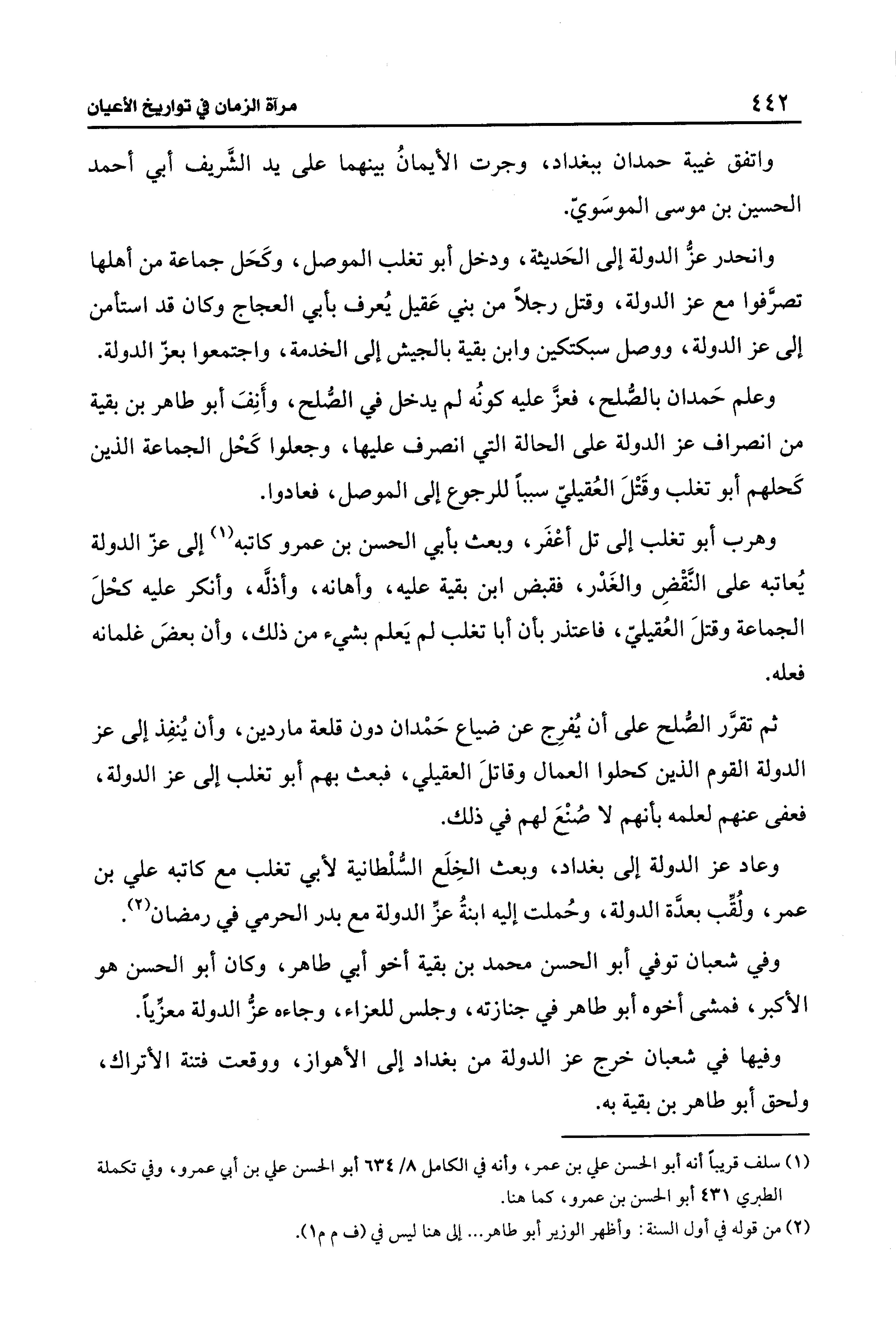 (¬1) سلف قريبًا أنه أبو الحسن علي بن عمر، وأنه في الكامل 8/ 634 أبو الحسن علي بن أبي عمرو، وفي تكملة الطبري 431 أبو الحسن بن عمرو، كما هنا.