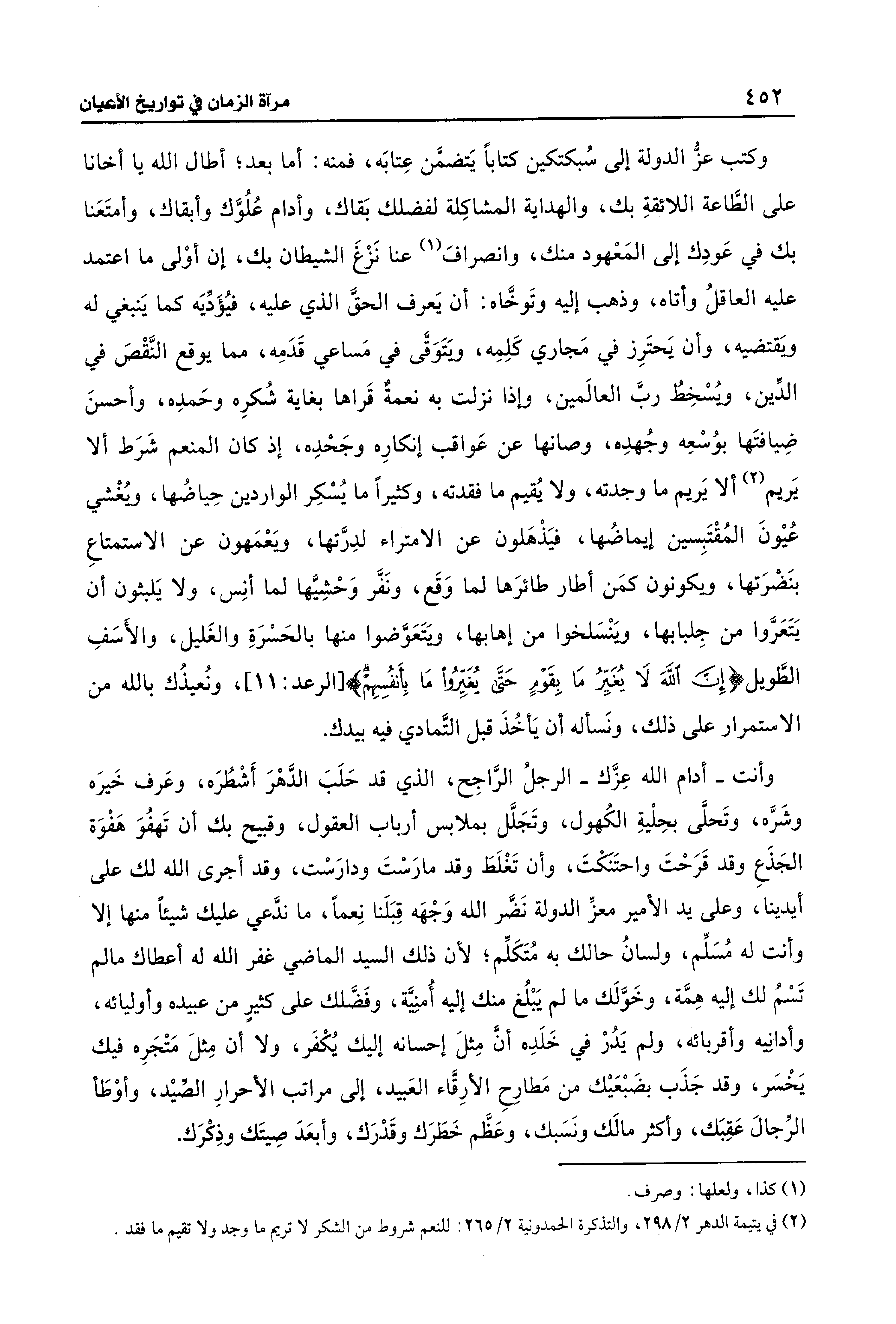 وأنت - أدام الله عِزَّك - الرجلُ الرَّاجِح، الذي قد حَلَبَ الدَّهْرَ أَشْطُرَه، وعَرف خَيرَه وشَرَّه، وتَحلَّى بحِلْيةِ الكُهول، وتَجَلَّل بملابس أرباب العقول، وقبيح بك أن تَهفُوَ هَفْوَة الجَذَعِ وقد قَرَحْتَ واحتَنكْتَ، وأن تَغْلَطَ وقد مارَسْتَ ودارَسْت، وقد أجرى الله لك على أيدينا، وعلى يد الأمير معزِّ الدولة نَضَّر الله وَجْهَه قِبَلَنا نِعمًا، ما ندَّعي عليك شيئًا منها إلا وأنت له مُسَلِّم، ولسانُ حالك به مُتَكَلِّم؛ لأن ذلك السيد الماضي غفر الله له أعطاك ما لم تَسْمُ لك إليه هِمَّة، وخَوَّلَك ما لم يَبْلُغ منك إليه أُمنيَّة، وفَضَّلك على كثير من عبيده وأوليائه، وأدانِيه وأقربائه، ولم يَدُرْ في خَلَدِه أنَّ مِثلَ إحسانه إليك يُكْفَر، ولا أن مِثلَ مَتْجَرِه فيك يَخْسَر، وقد جَذَب بضَبْعَيك من مَطارحِ الأرِقَّاء العَبيد، إلى مراتب الأحرارِ الصِّيد، وأوْطَأ الرِّجال عَقِبَك، وأكثر مالك ونَسَبك، وعَظَم خَطَرَك وقَدْرَك، وأبعَدَ صِيتَك وذِكْرَك.
