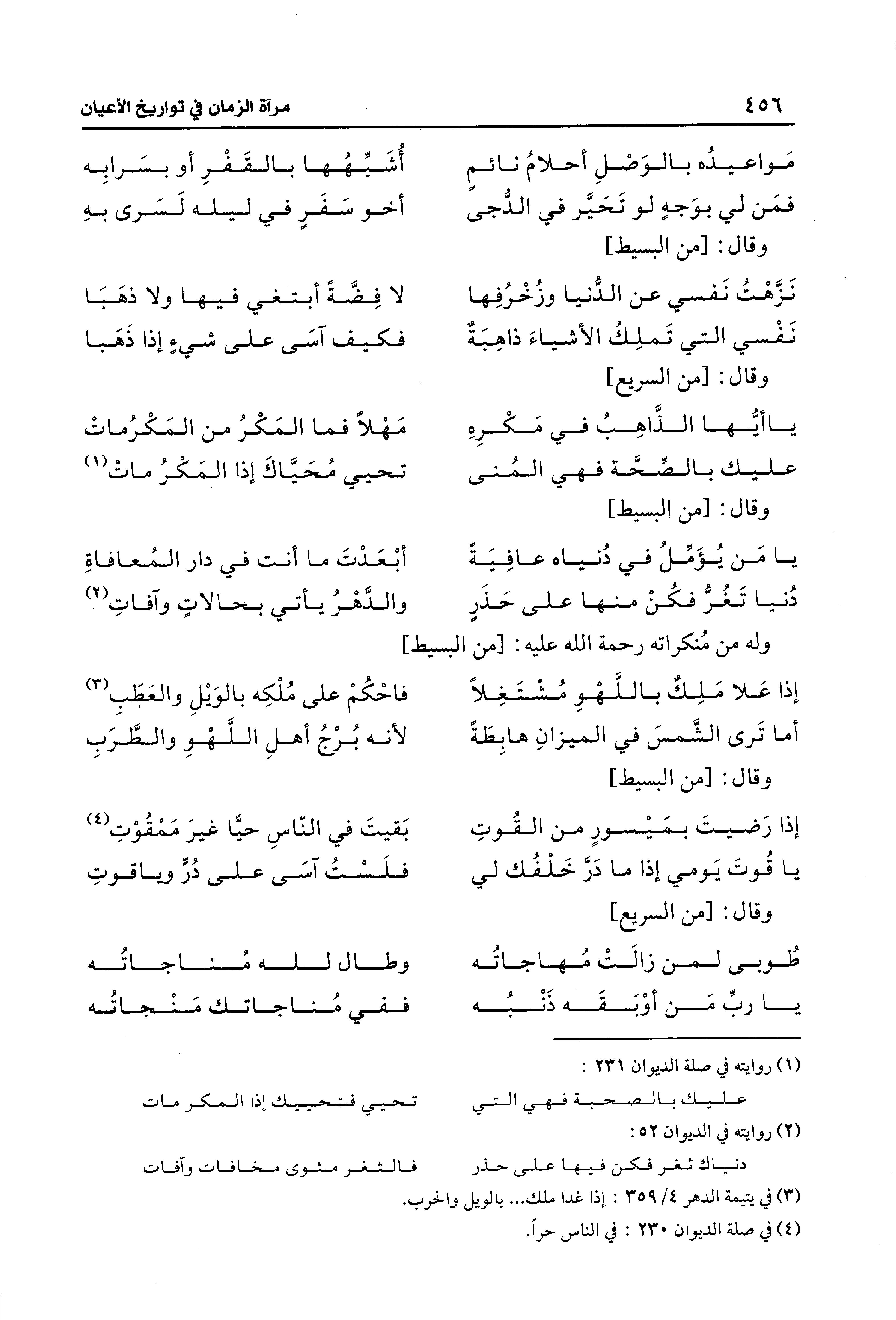 دُنيا تَغُرُّ فكُنْ منها على حَذَرٍ ... والدَّهْرُ يأتي بحالاتٍ وآفاتِ (¬2)