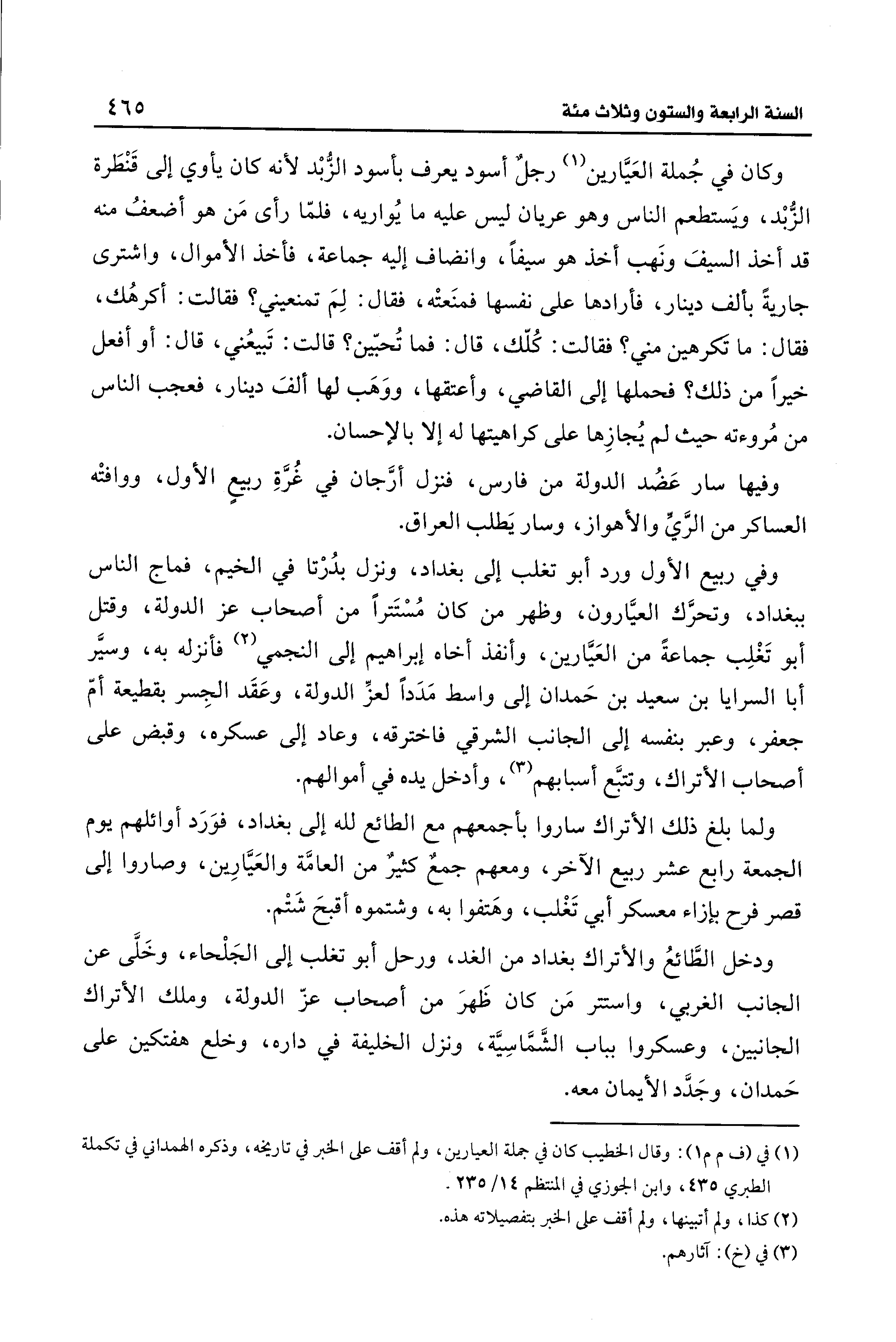 (¬1) في (ف م م 1): وقال الخطيب كان في جملة العيارين، ولم أقف على الخبر في تاريخه، وذكره الهمداني في تكملة الطبري 435، وابن الجوزي في المنتظم 14/ 235.