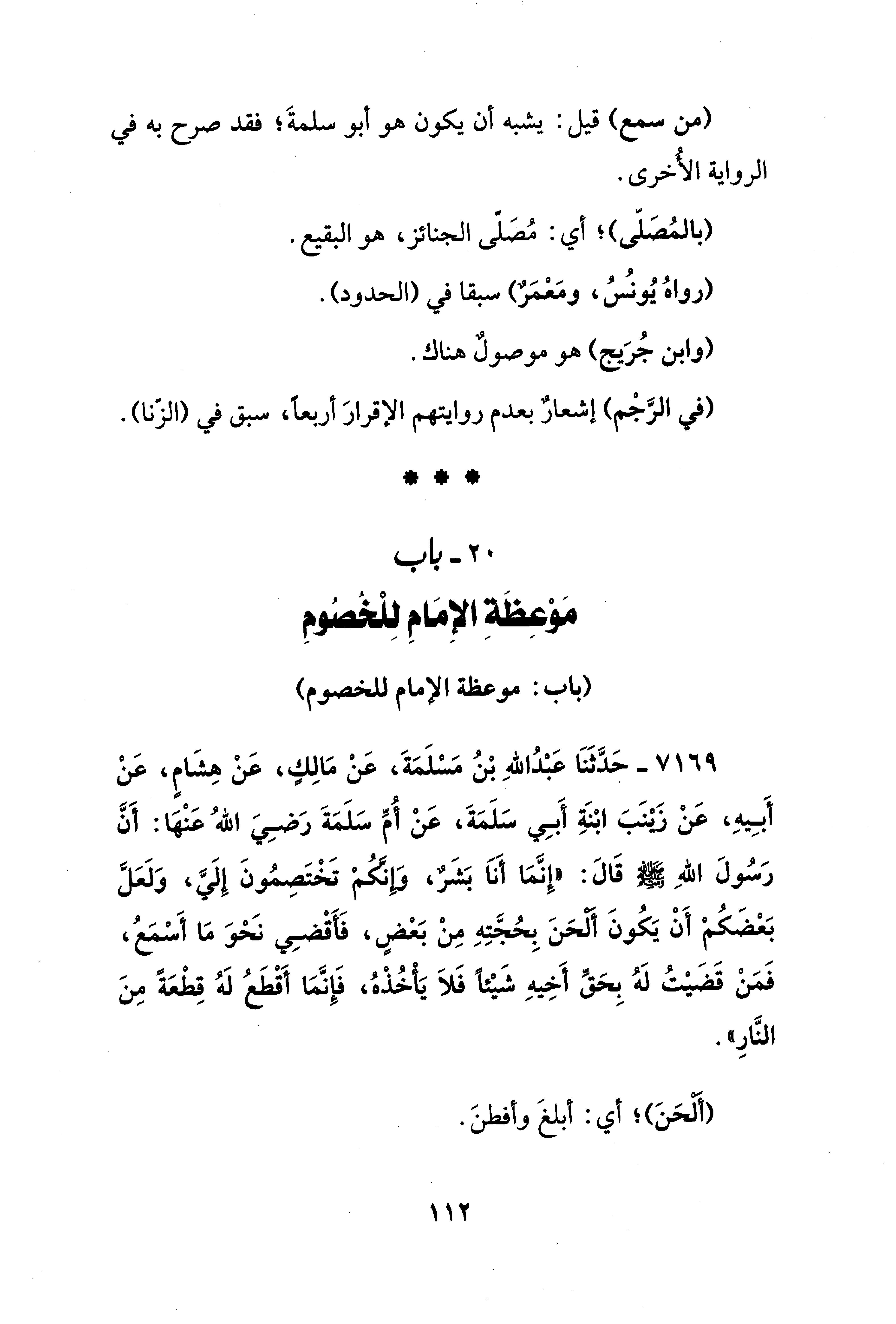 20 - باب مَوْعِظَةِ الإِمَامِ لِلْخُصُومِ
