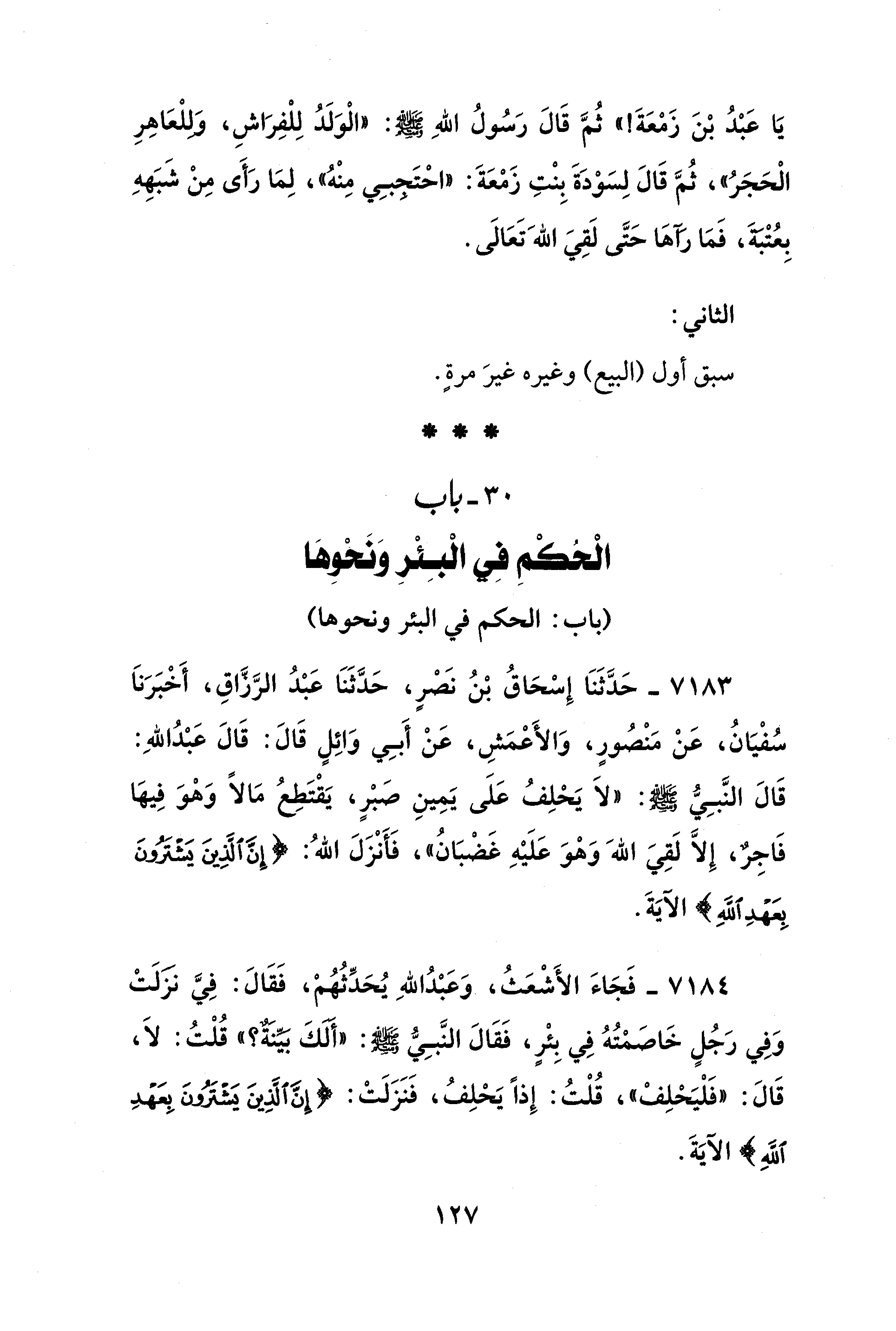 30 - باب الْحُكْمِ فِي الْبِئْرِ وَنَحْوِهَا