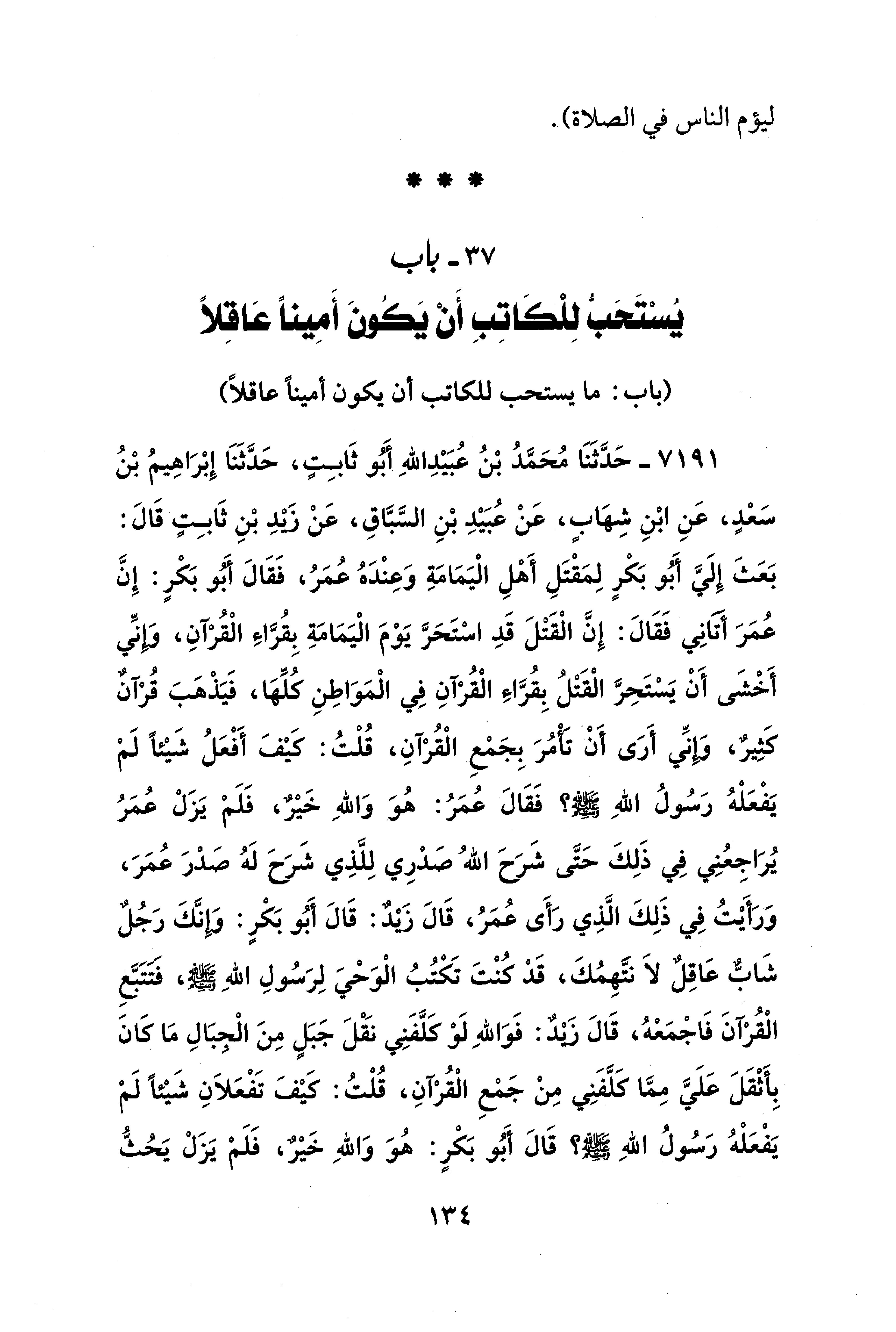37 - باب يُسْتَحَبُّ لِلْكَاتِبِ أَنْ يَكُونَ أَمِينًا عَاقِلًا