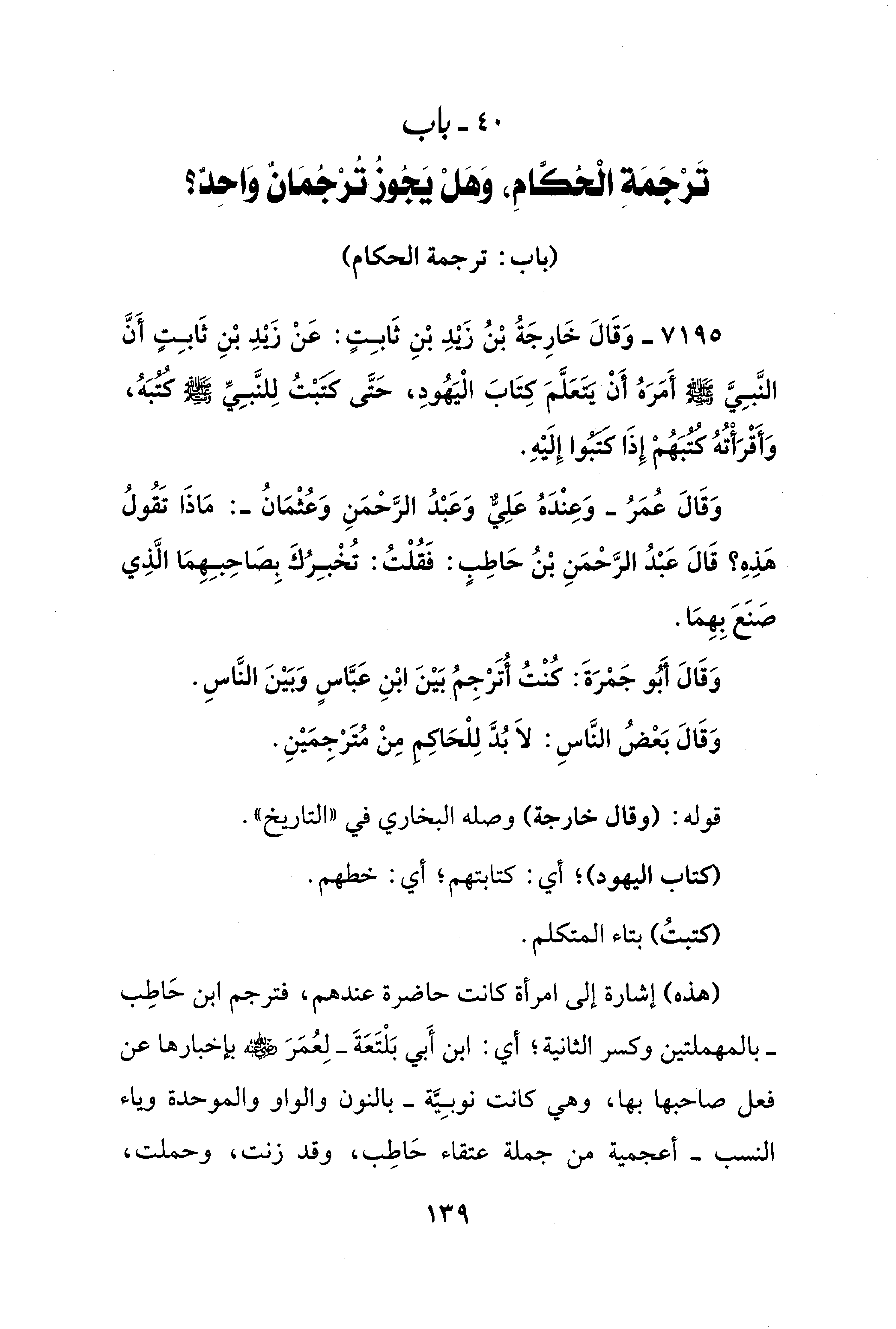40 - باب تَرْجَمَةِ الْحُكَّامِ، وَهَلْ يَجُوزُ تُرْجُمَانٌ وَاحِدٌ؟