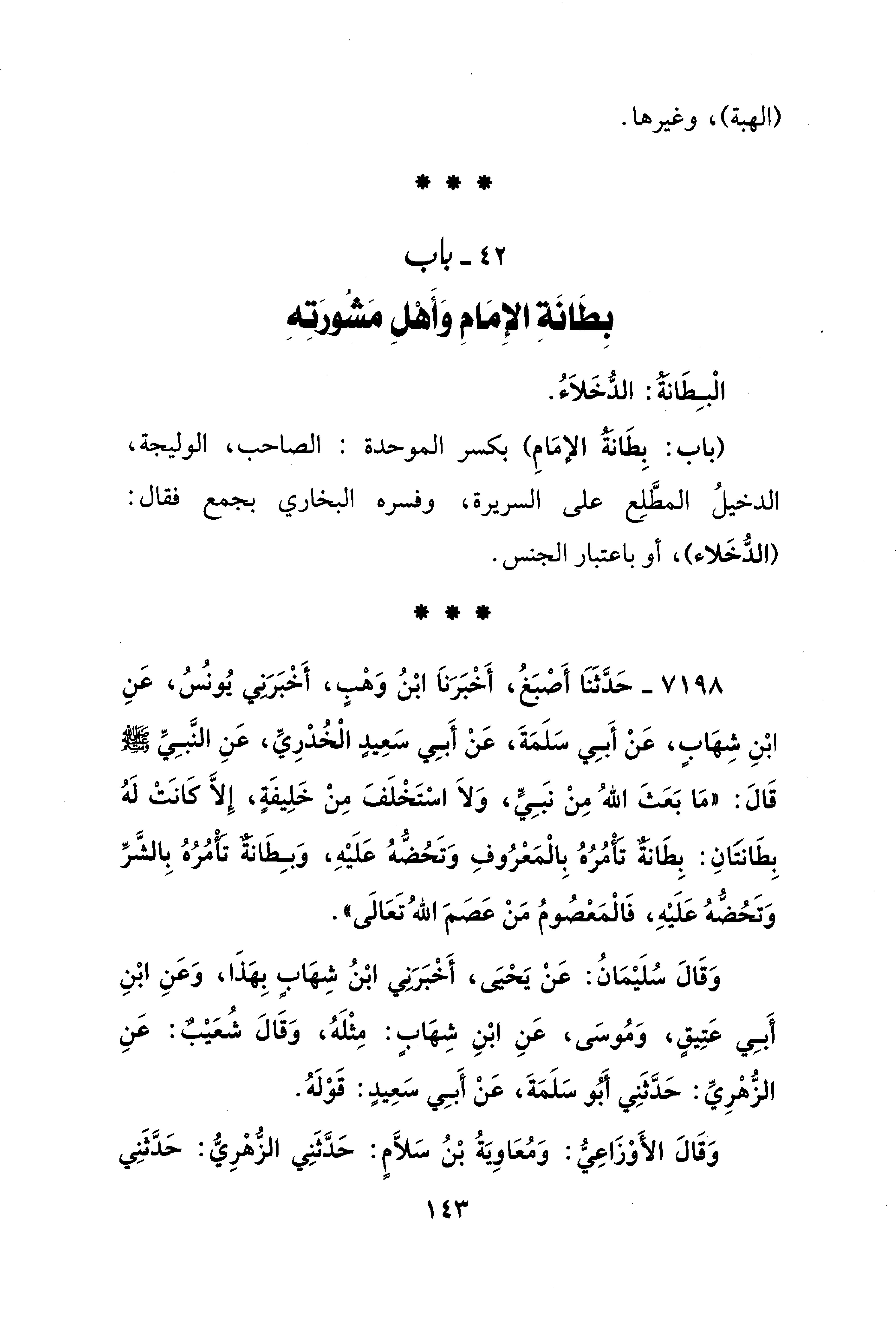 42 - باب بِطَانَةِ الإِمَامِ وَأَهْلِ مَشُورَتِهِ