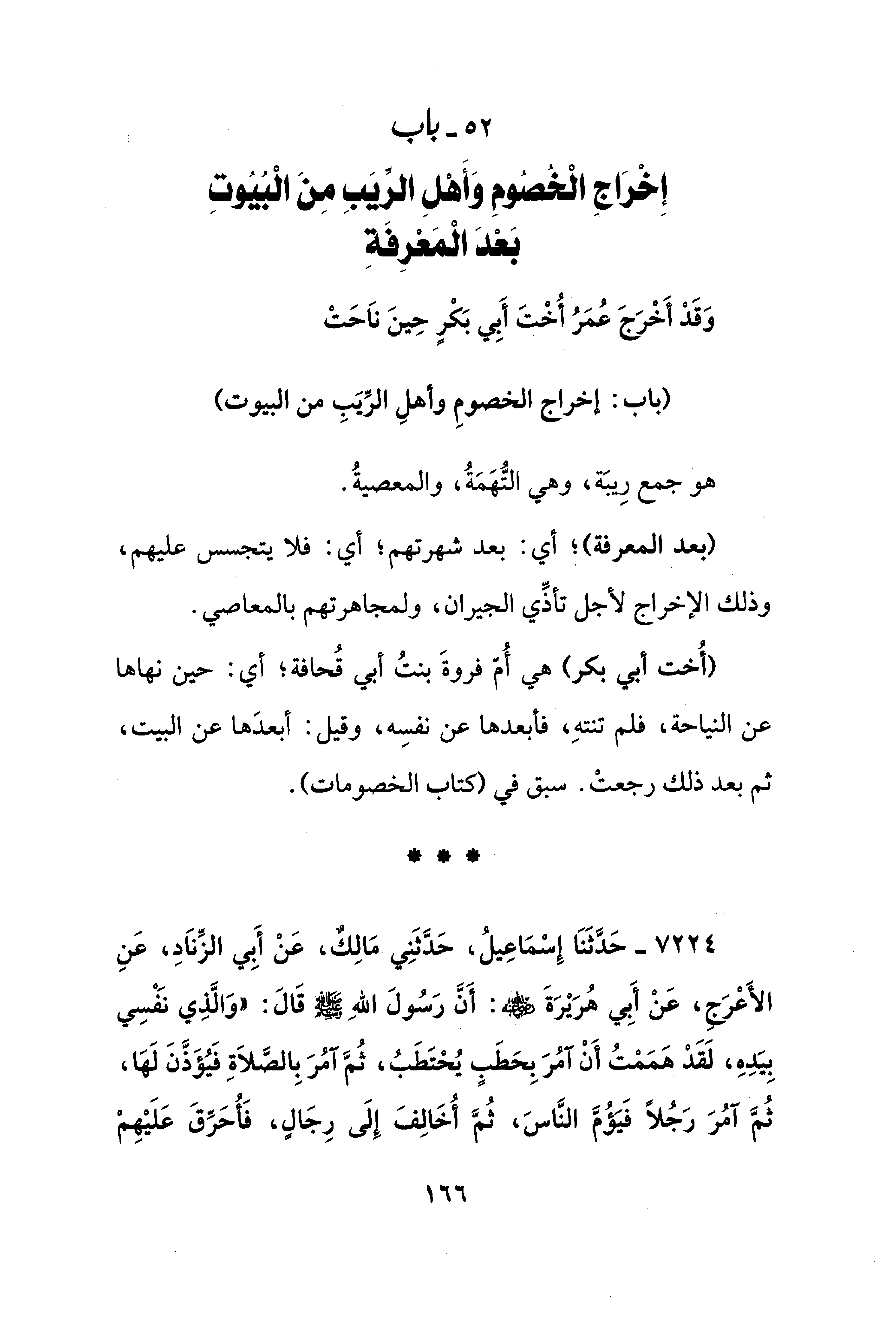 52 - باب إِخْرَاجِ الْخُصُومِ وَأَهْلِ الرِّيَبِ مِنَ الْبُيُوتِ بَعْدَ الْمَعْرِفَةِ