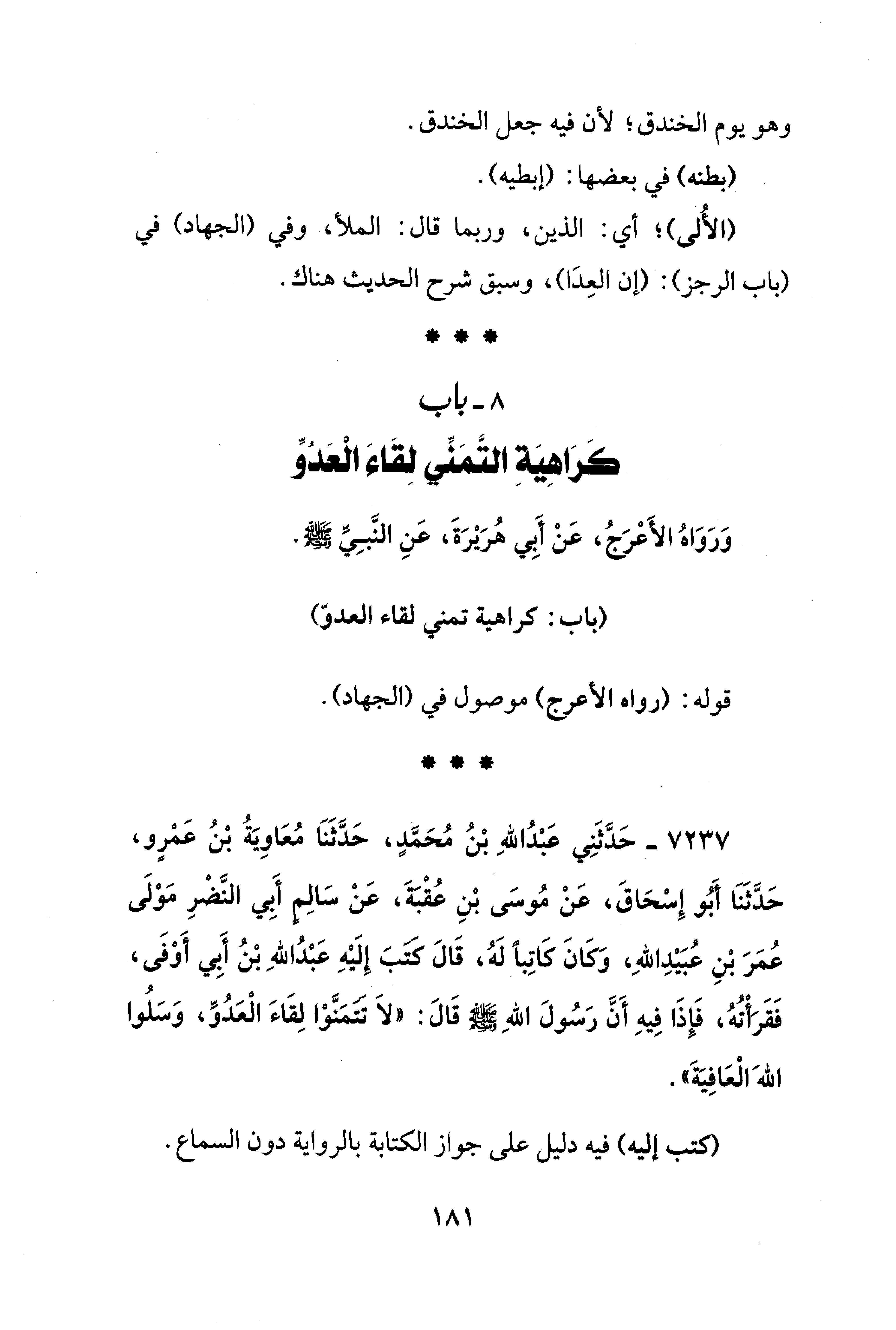 8 - باب كَرَاهِيَةِ التَّمَنِّي لِقَاءَ الْعَدُوِّ
