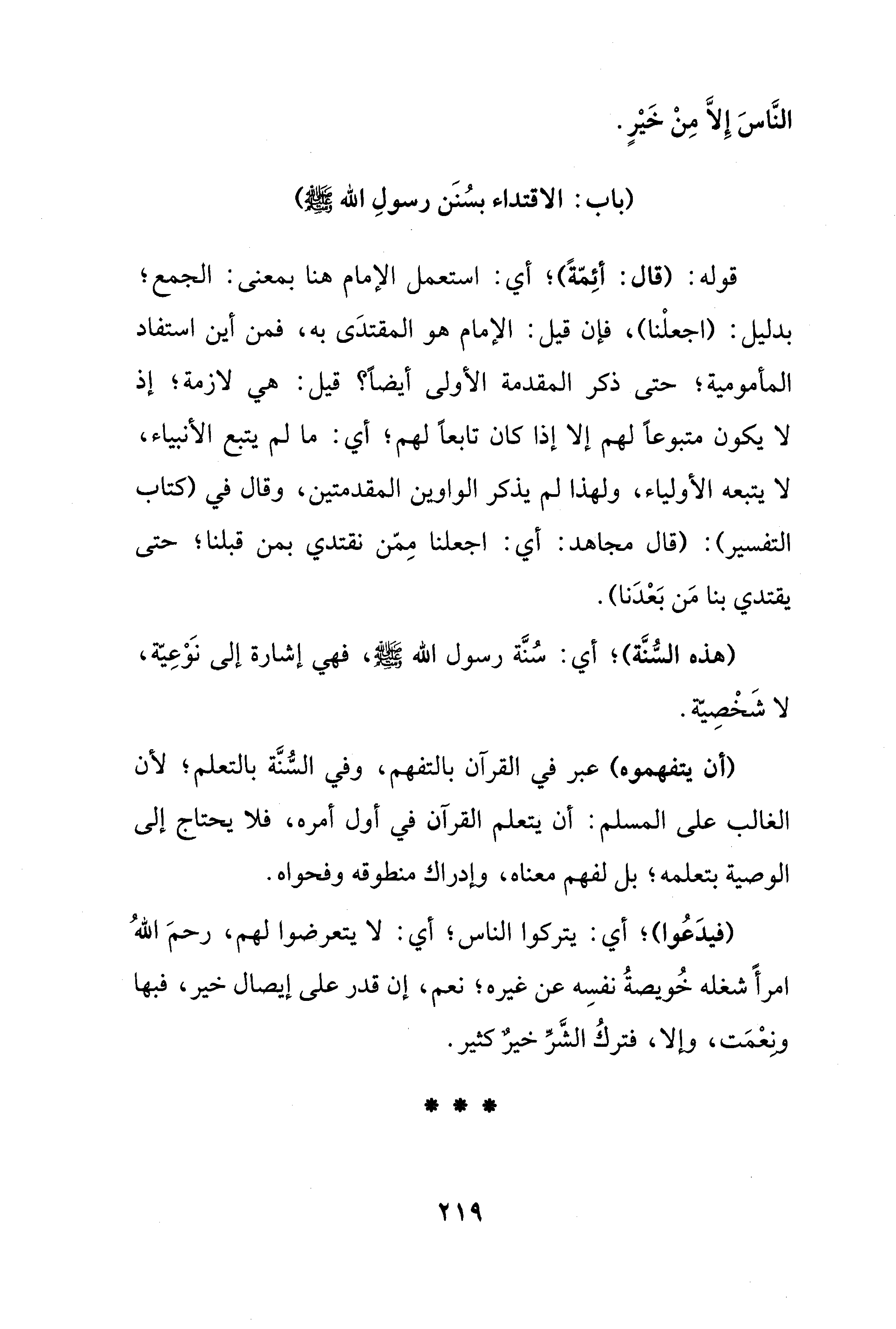 (باب: الاقتداء بسُنَن رسولِ الله - صلى الله عليه وسلم -)